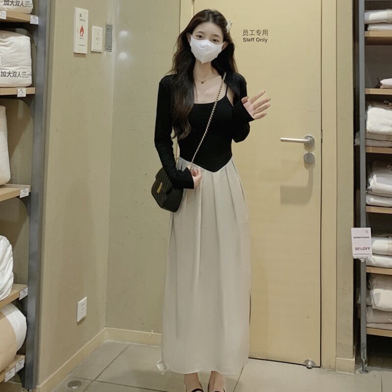 プラスサイズの婦人服 2023 春の新しいファットシスター痩身カーディガントップステッチウエストドレス 2 点セット 大きめサイズ スプリング 春物 888412331501303