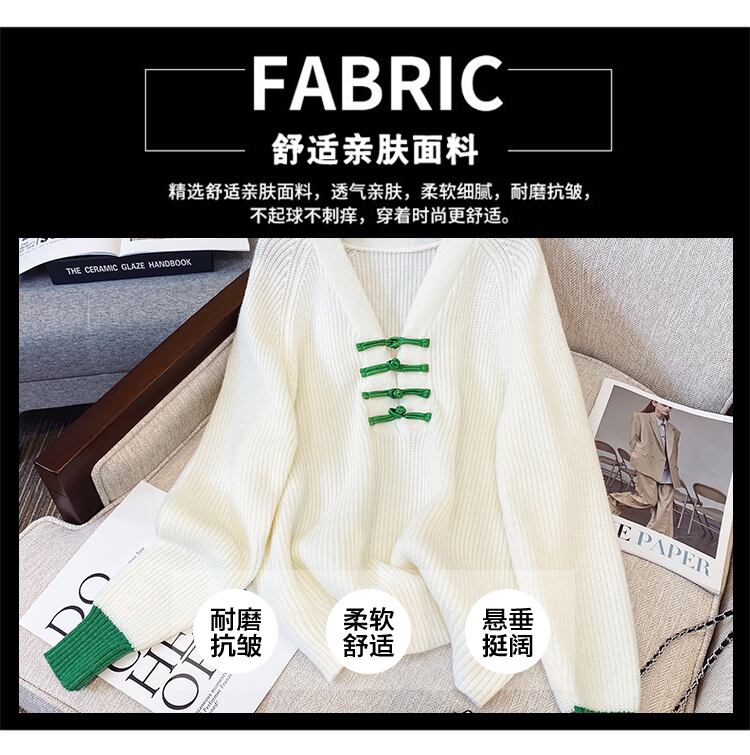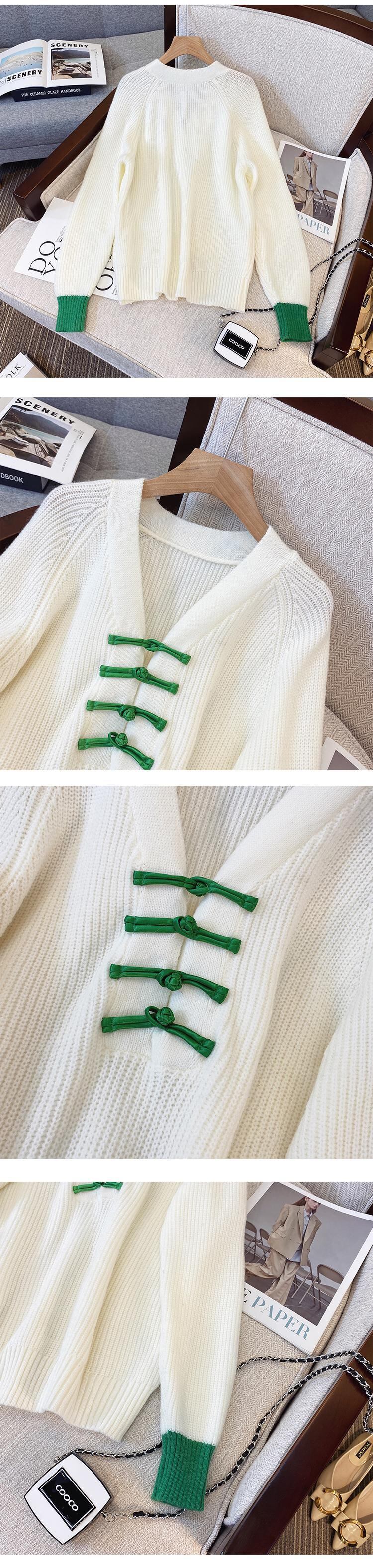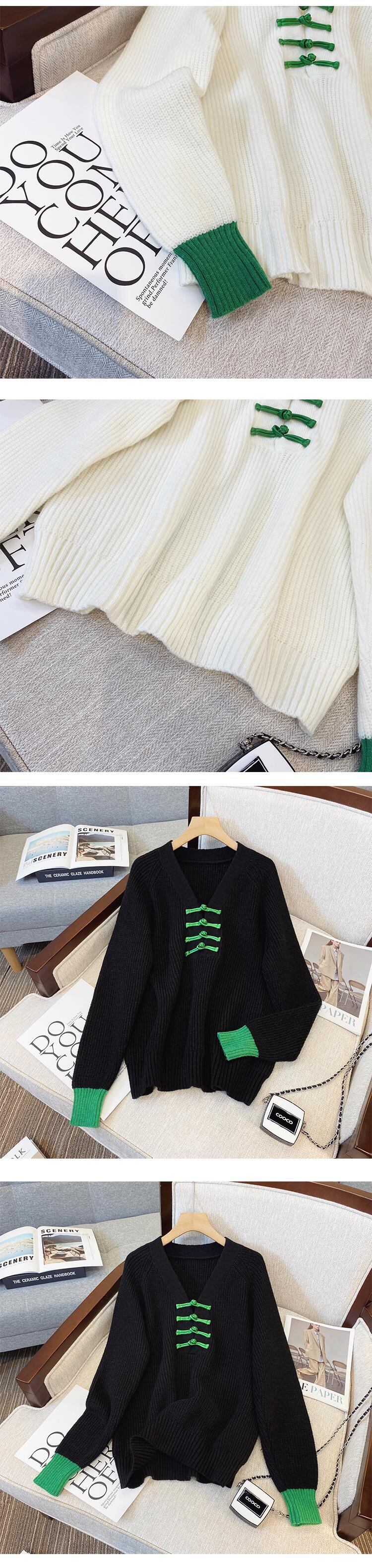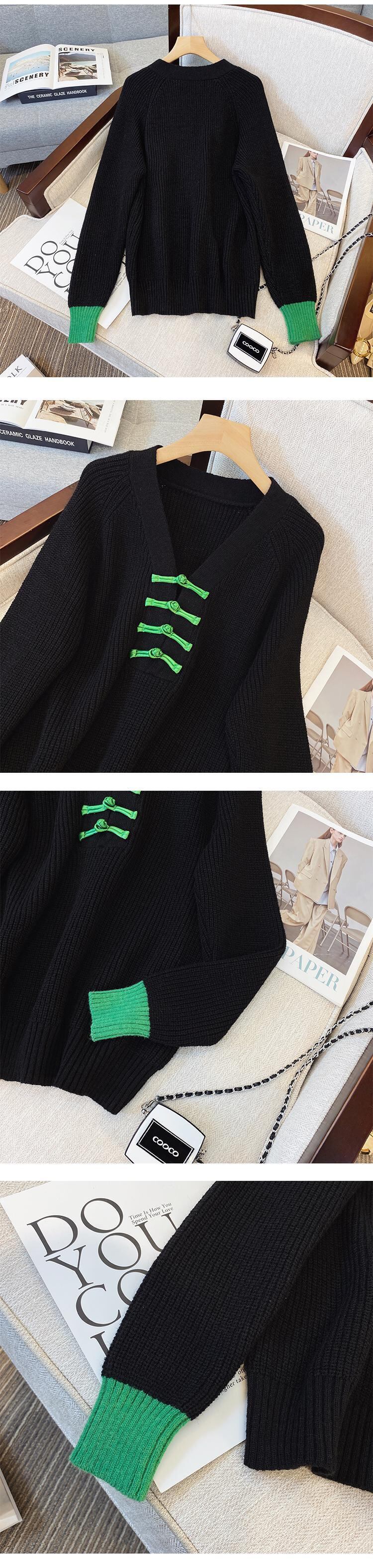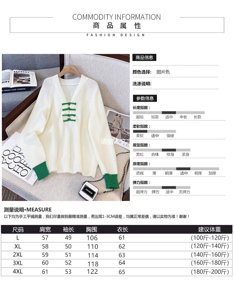 プラスサイズの婦人服 2023 春の新しいスタイルの太った姉妹ファッション配色デザインバックル V ネック肉カバーニットセーター 大きめサイズ スプリング 春物 Vネック 8884140199780684
