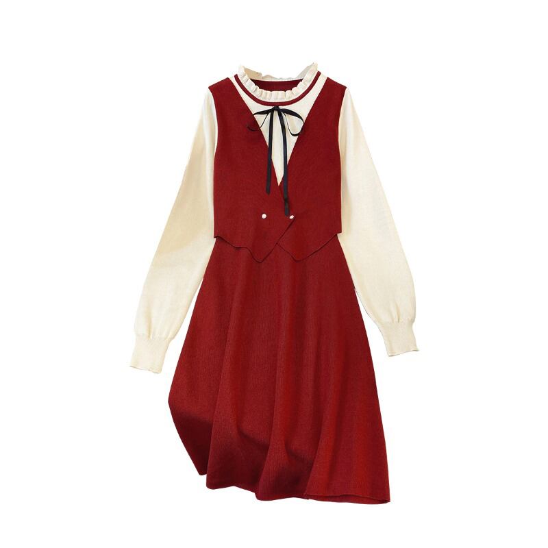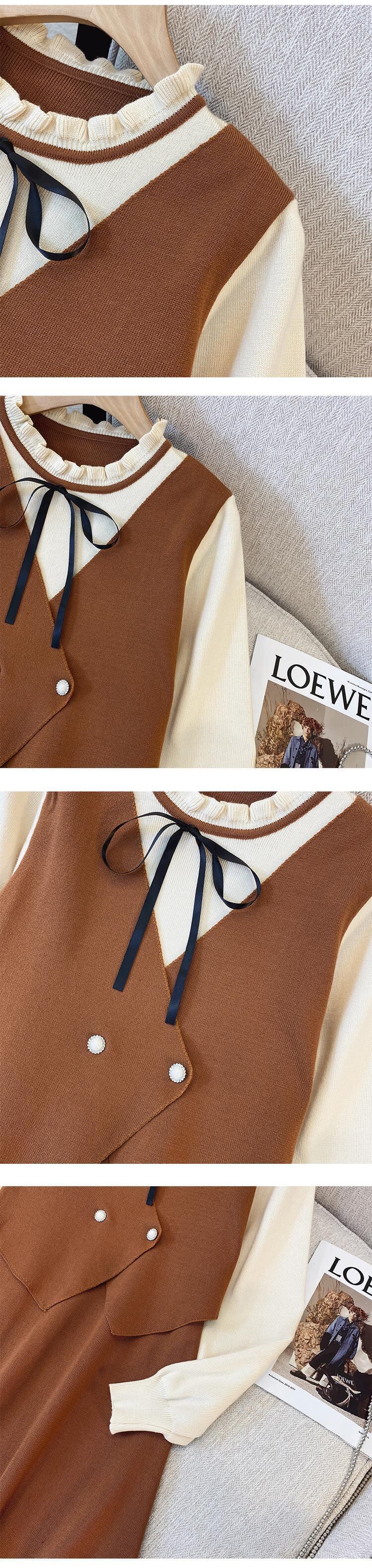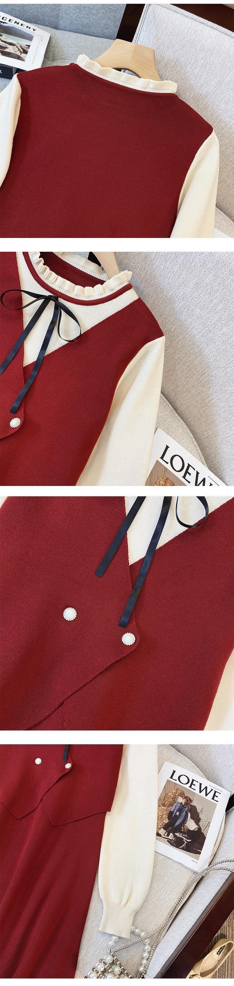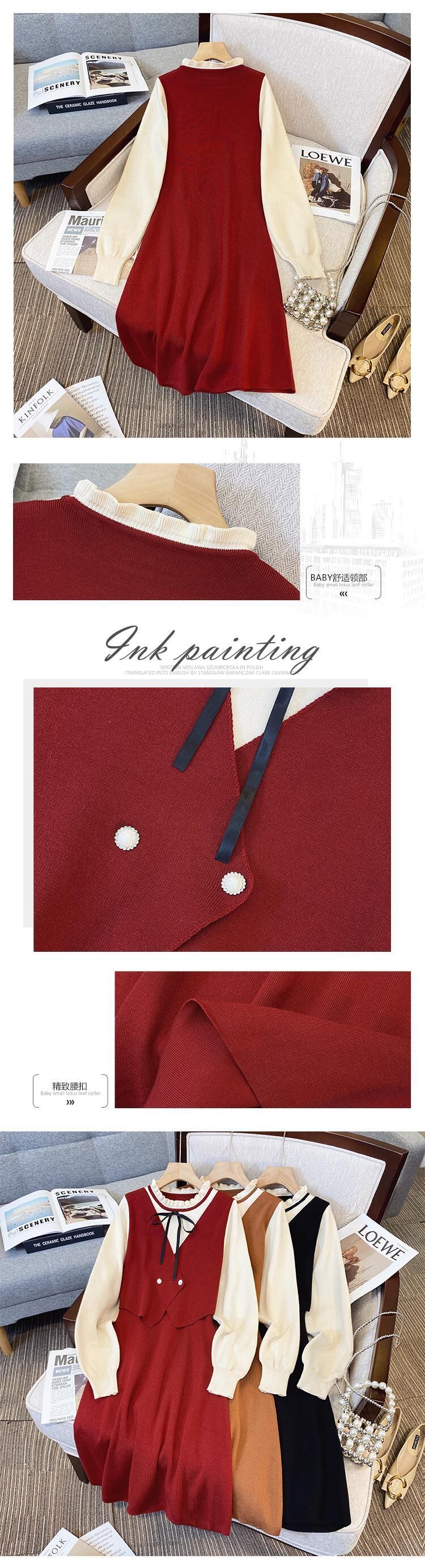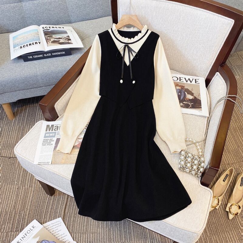 大きいサイズの婦人服 2023 トレンディな女性の春の新しい太った姉妹フレンチ スタイル フェイク ツー ピース ファッション eign スタイル緩くて薄いドレス 大きめサイズ スプリング 春物 8884176726128274