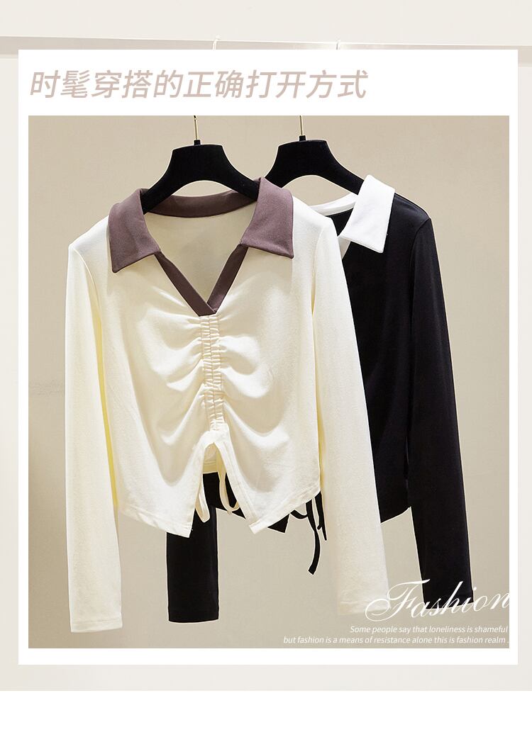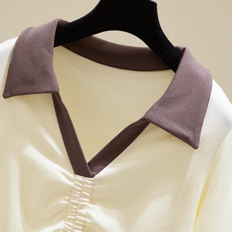 大きいサイズの婦人服 2023 春の新しいファット シスター ファッション コントラスト カラー ポロ襟巾着長袖老化防止ニット セーター ロング 大きめサイズ スプリング 春物 8884169473372614