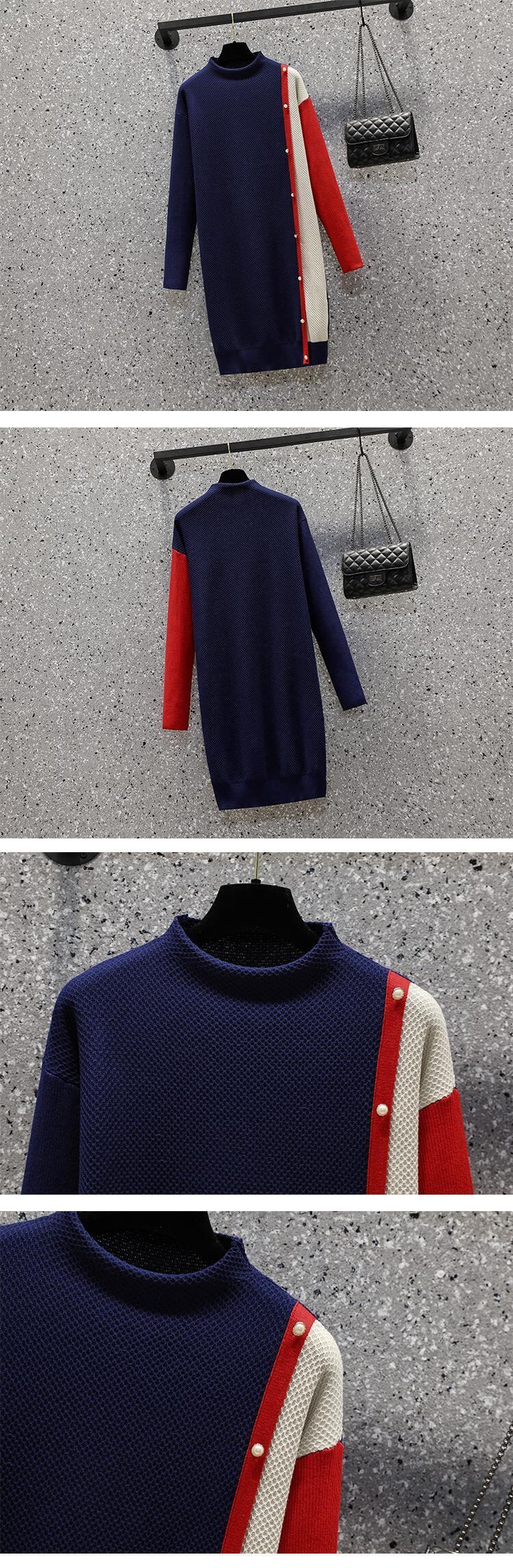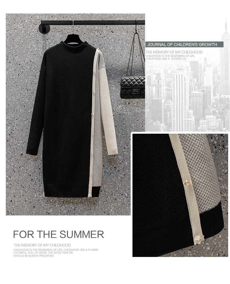 大きいサイズの婦人服 2023 トレンディな女性の春の新しいファット シスター デザイン センス カラー コントラスト 年齢を減らす ボトミング セーター ニット ドレス 大きめサイズ スプリング 春物 8884160236427802