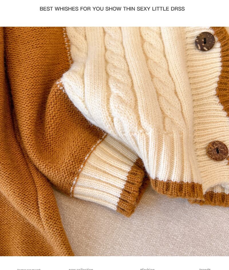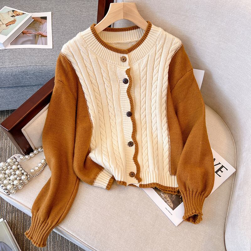 プラスサイズの婦人服 2023 ファットシスター春の新色コントラストニットカーディガンセーターシックな老化ショートコート女性 大きめサイズ スプリング 春物 8884164658292498