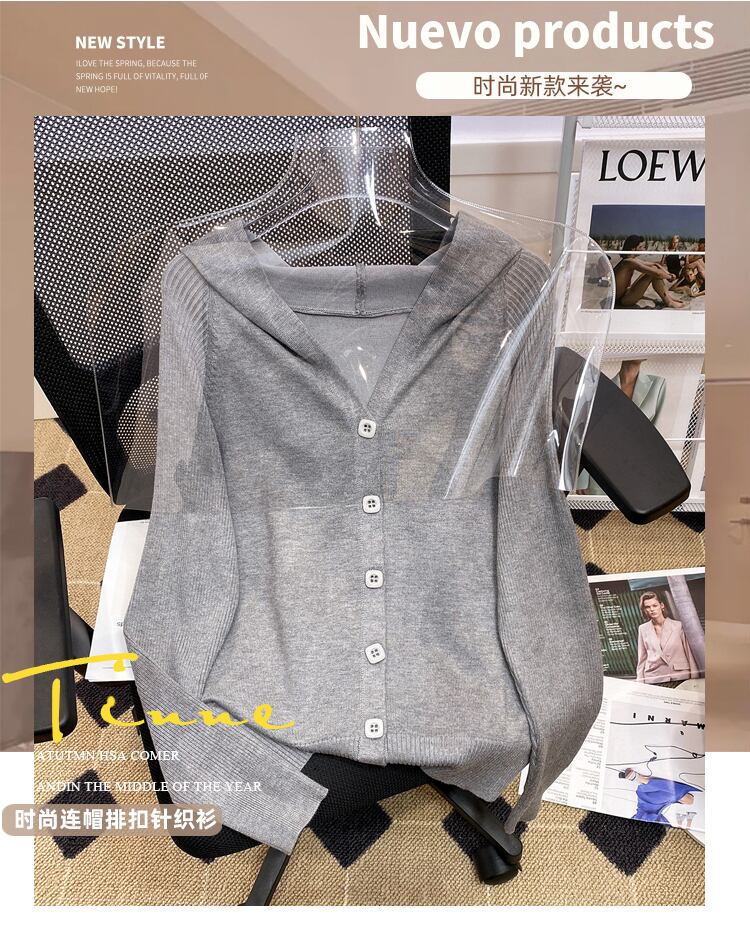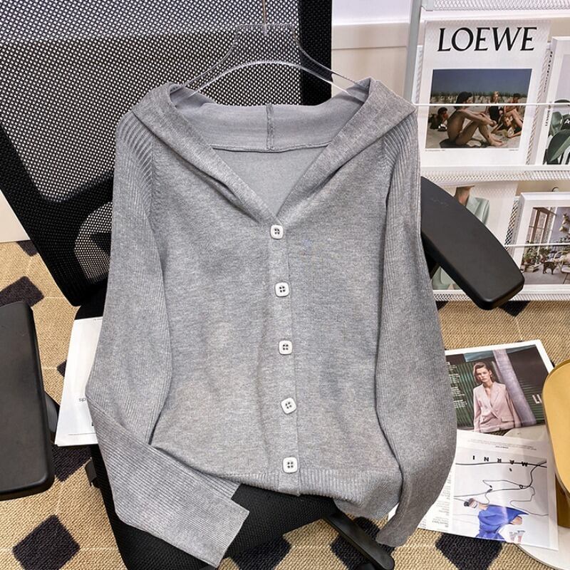 プラスサイズの婦人服 2023 春の新しいファットシスター eign スタイルのフード付きセーター緩いカーディガンシックな無地トップ 大きめサイズ スプリング 春物 ソリッドカラー 8884145287590838