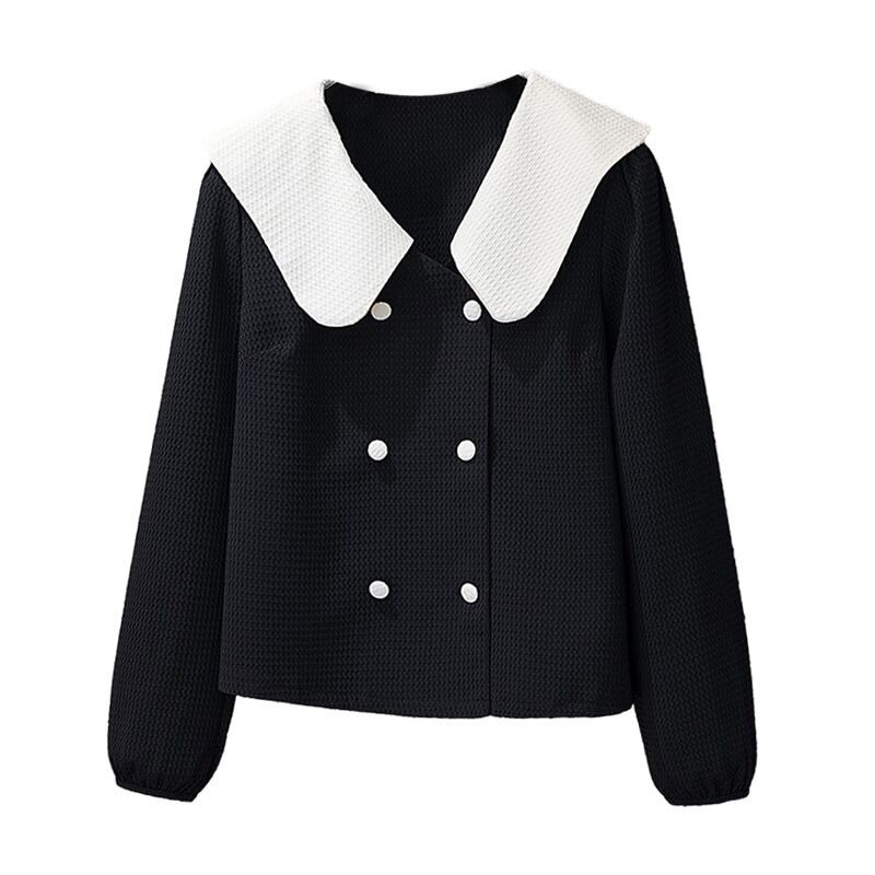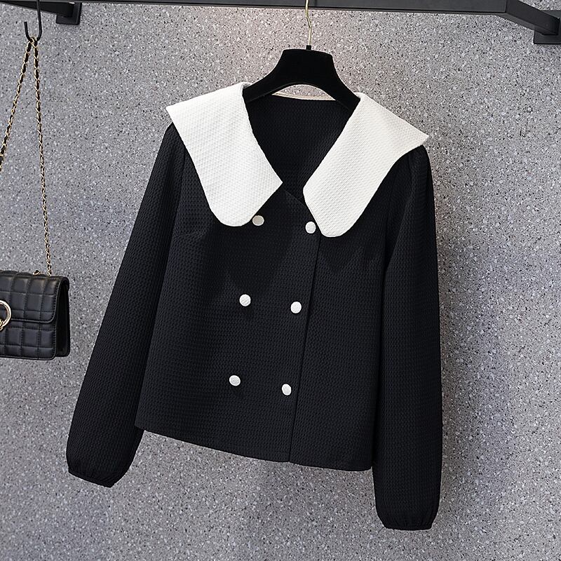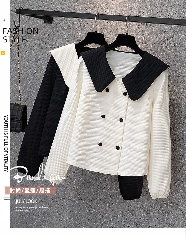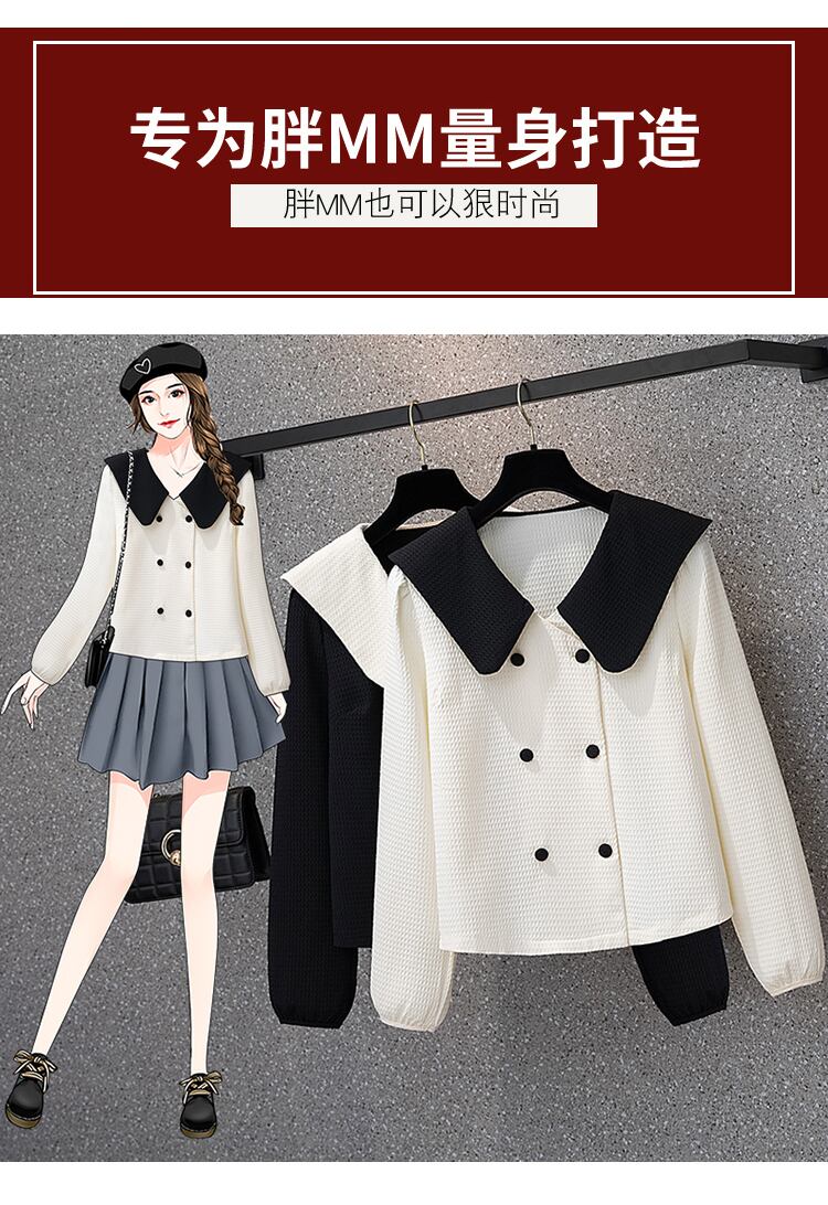 プラスサイズの婦人服 2023 春の新しい太った姉妹フレンチ スタイルの人形の襟長袖気質ワッフル肉カバー シャツ ロング 大きめサイズ スプリング 春物 8884170381800255