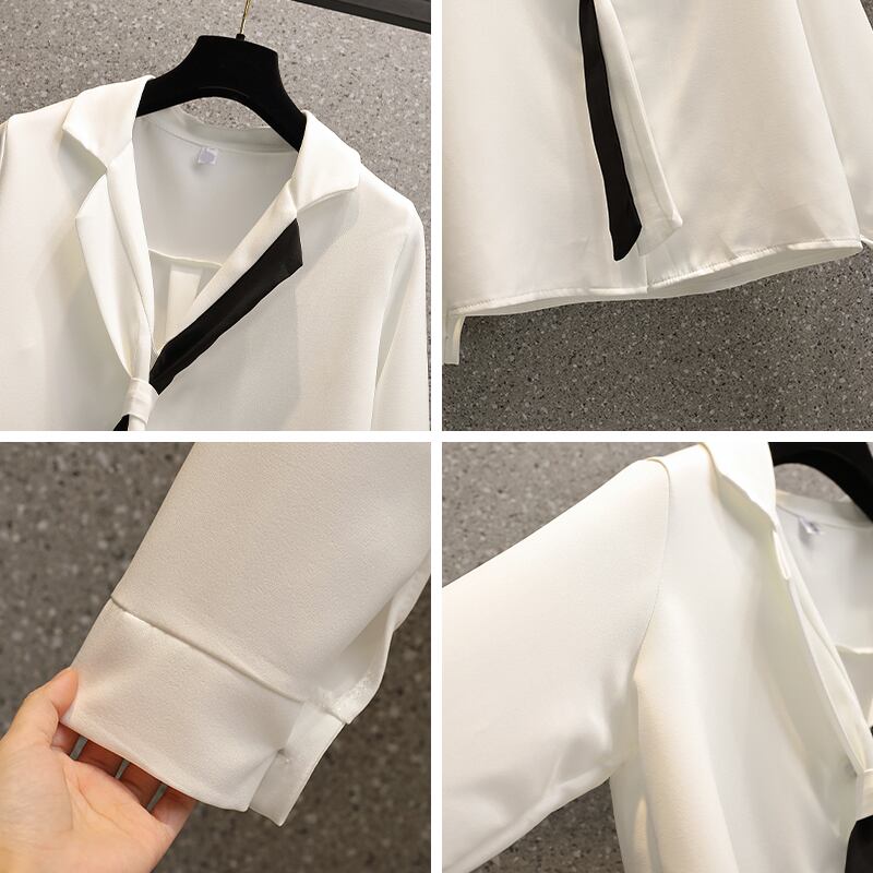 大きいサイズの婦人服 2023 春の新しいファッション デザイン センス ホワイト ミドル丈 ルーズ スリム スーツ 襟 シャツ トレンディ 大きめサイズ スプリング 春物 8884180886270695