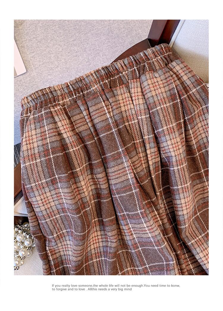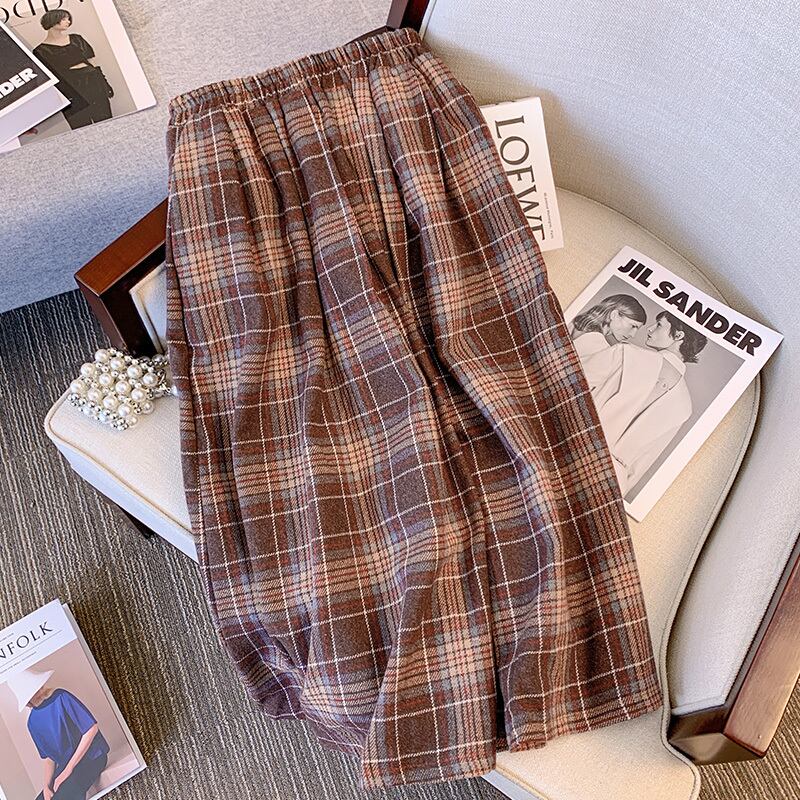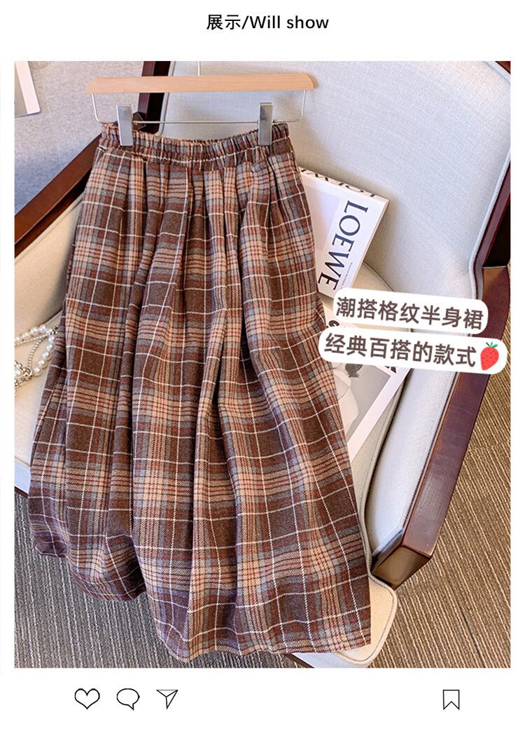 プラスサイズの婦人服2023ファットシスター春の新作ルーズで薄いファッション気質のカジュアル起毛チェック柄スカート 大きめサイズ スプリング 春物 8884156180173030
