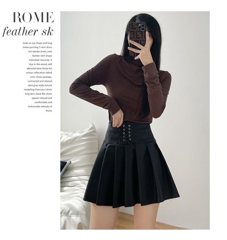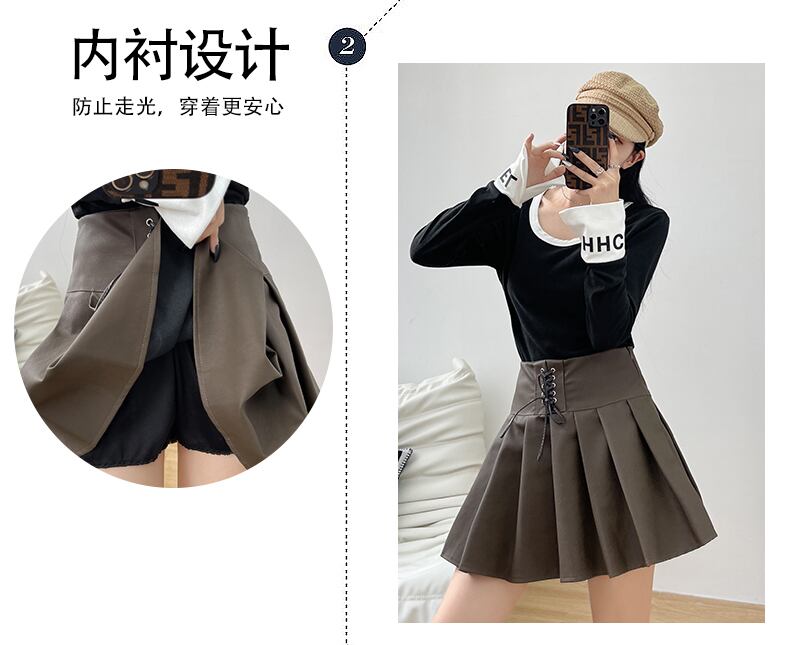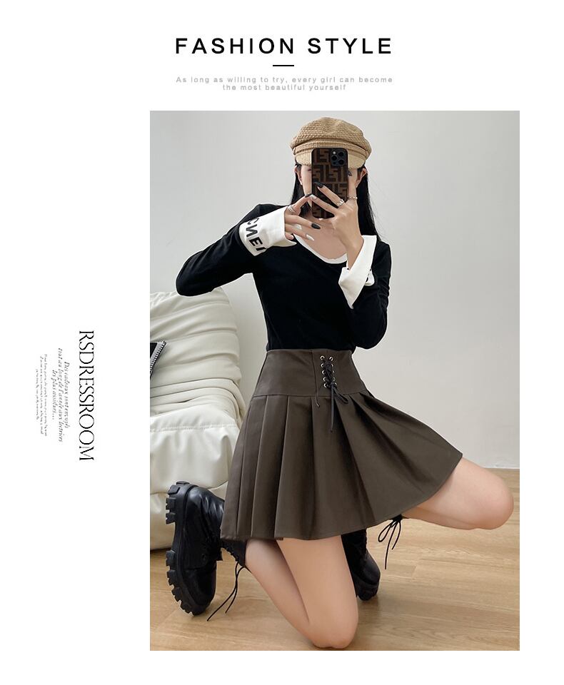 プラスサイズの婦人服 2023 トレンディな女性の春の新しいファットシスターハイウエスト巾着カジュアルプリーツスカート A ライン PU レザースカート潮 ハイウェスト 大きめサイズ スプリング 春物 Aライン 8884178824562984
