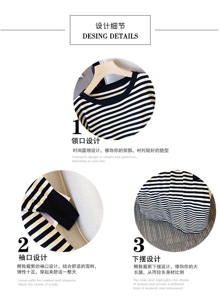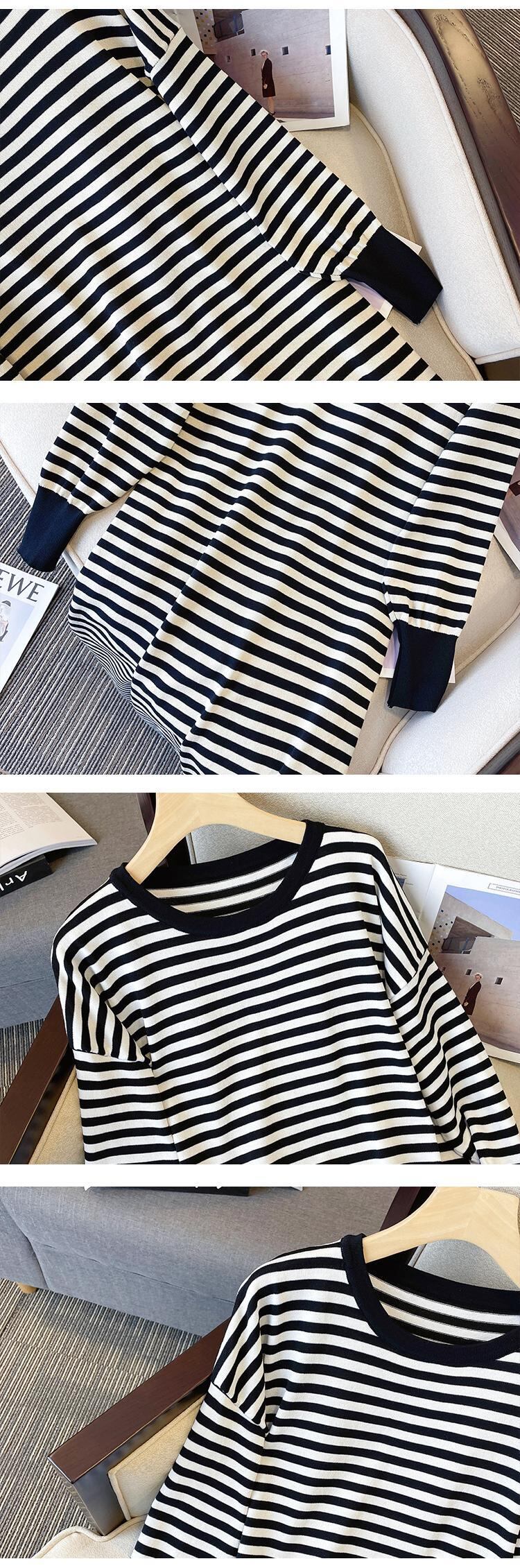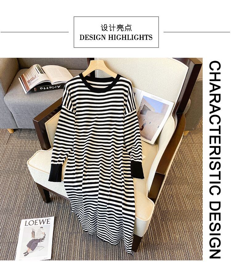 プラスサイズの婦人服 2023 春の新しいファットシスターストライプニットのシックなバージョンルーズで薄い長袖ドレス ロング 大きめサイズ スプリング 春物 8884110949808787