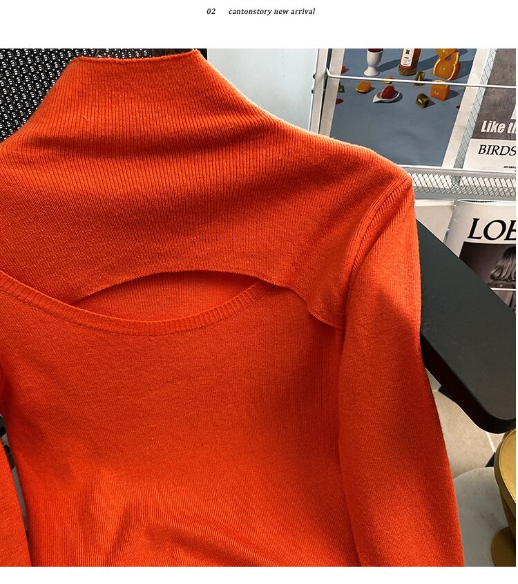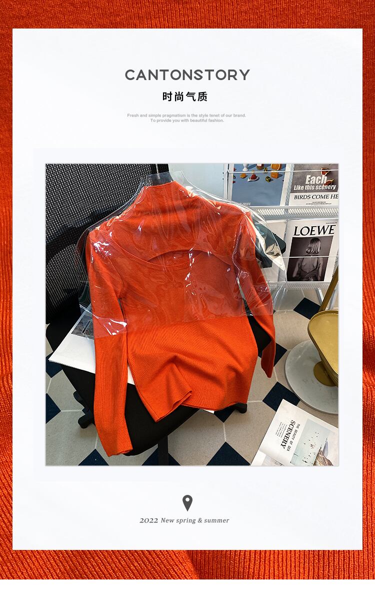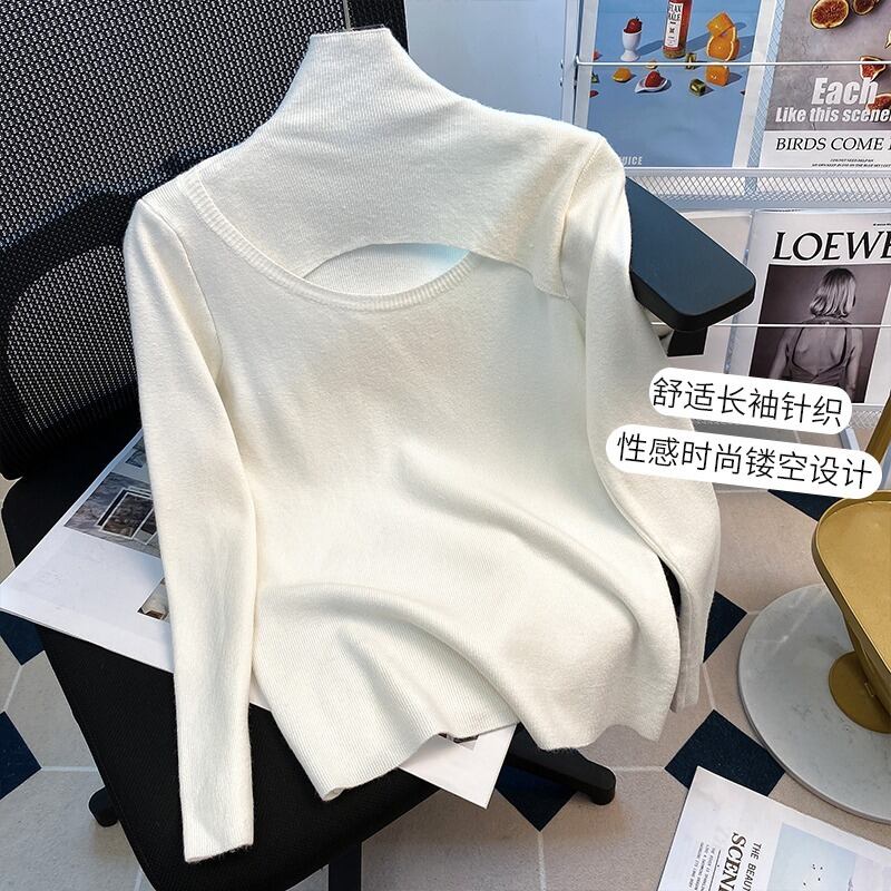 プラスサイズの婦人服 2023 トレンディな女性の春の新しい太った姉妹のファッションデザインセンス中空ハーフハイカラー底入れニットセーター潮 大きめサイズ スプリング 春物 8884128746909580