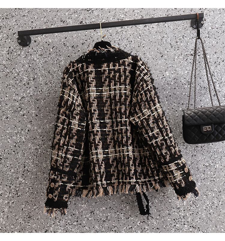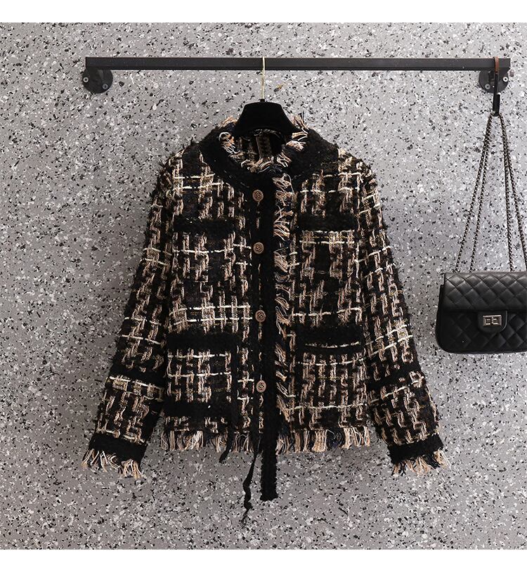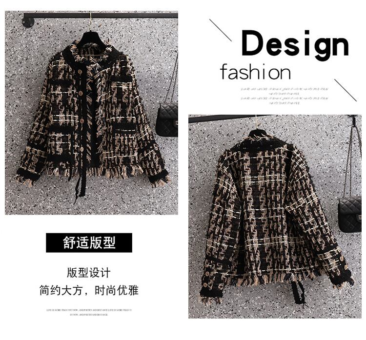 プラスサイズの婦人服2023ファットシスター春の新しいeignスタイルの薄いショートヘビーブラックゴールド編組フリンジジャケット 大きめサイズ スプリング 春物 8884114049014347