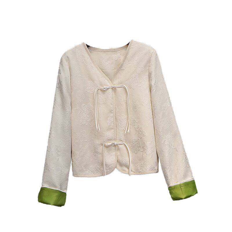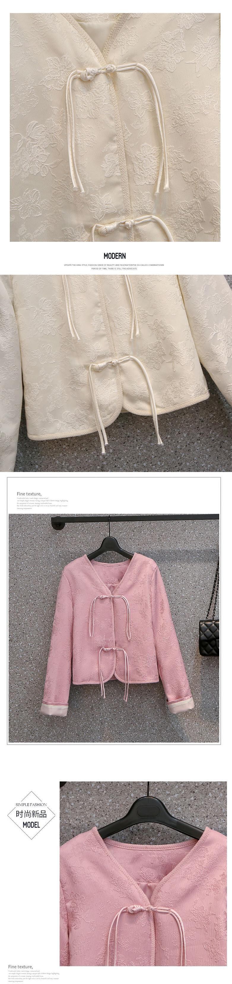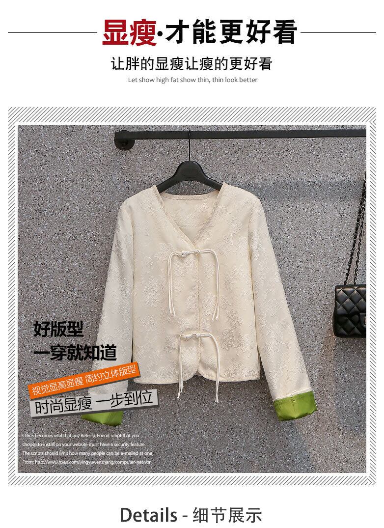 プラスサイズの婦人服 2023 春服脂肪姉妹新しいレトロなジャカードバックルピンク気質 v ネックショートコート女性 大きめサイズ スプリング 春物 Vネック 888415394221717