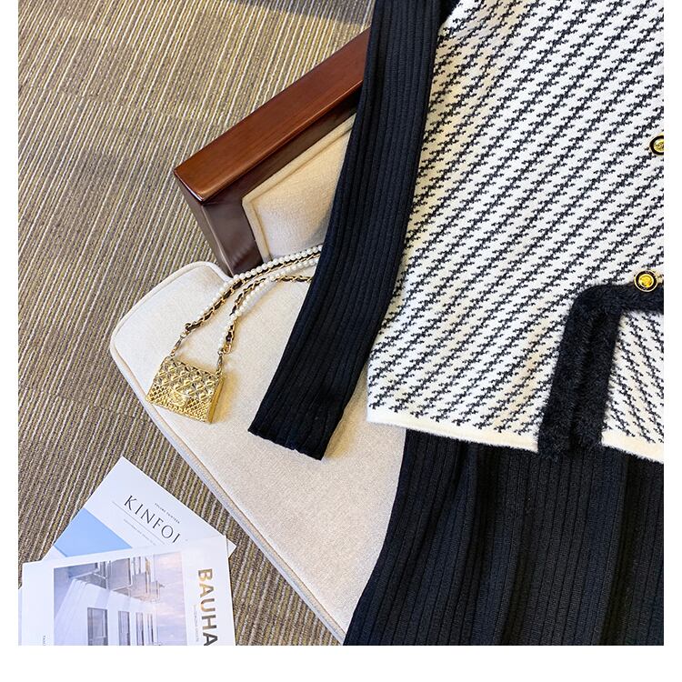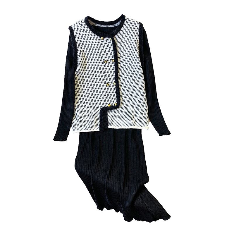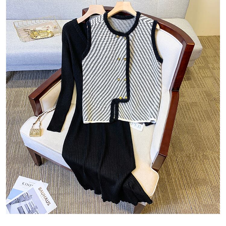 プラスサイズの婦人服 2023 ファットシスター春の新ストライプベストコート底入れニットドレスツーピースセット 大きめサイズ スプリング 春物 8884161937664779