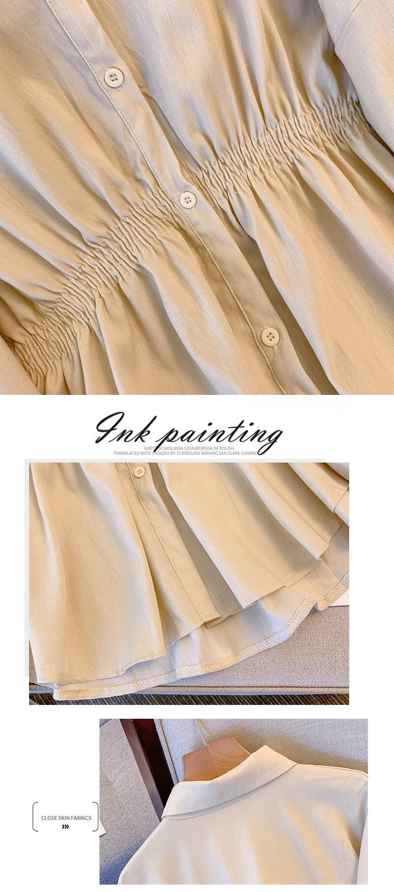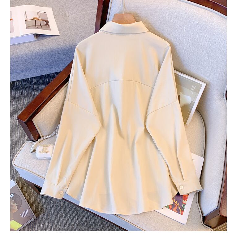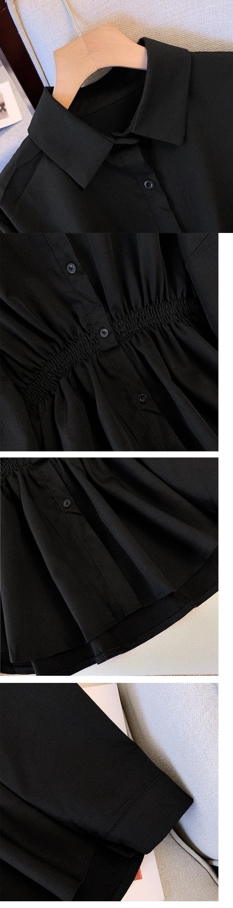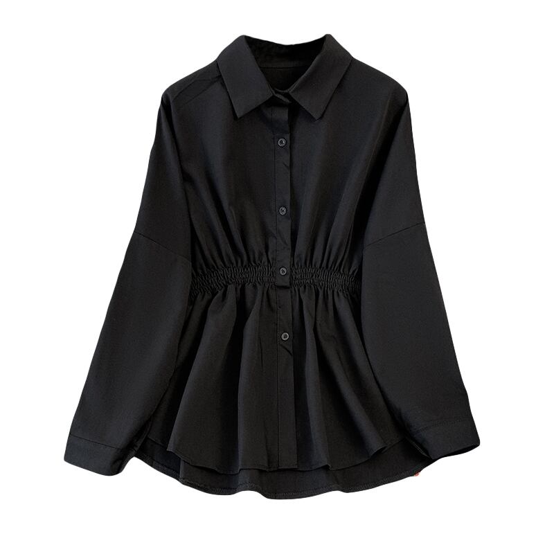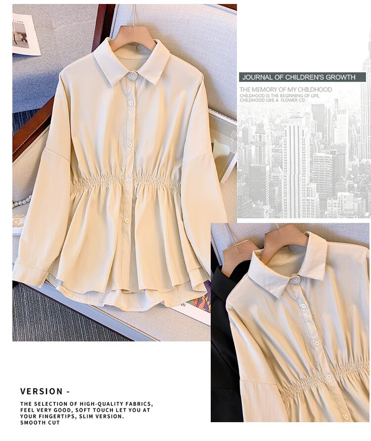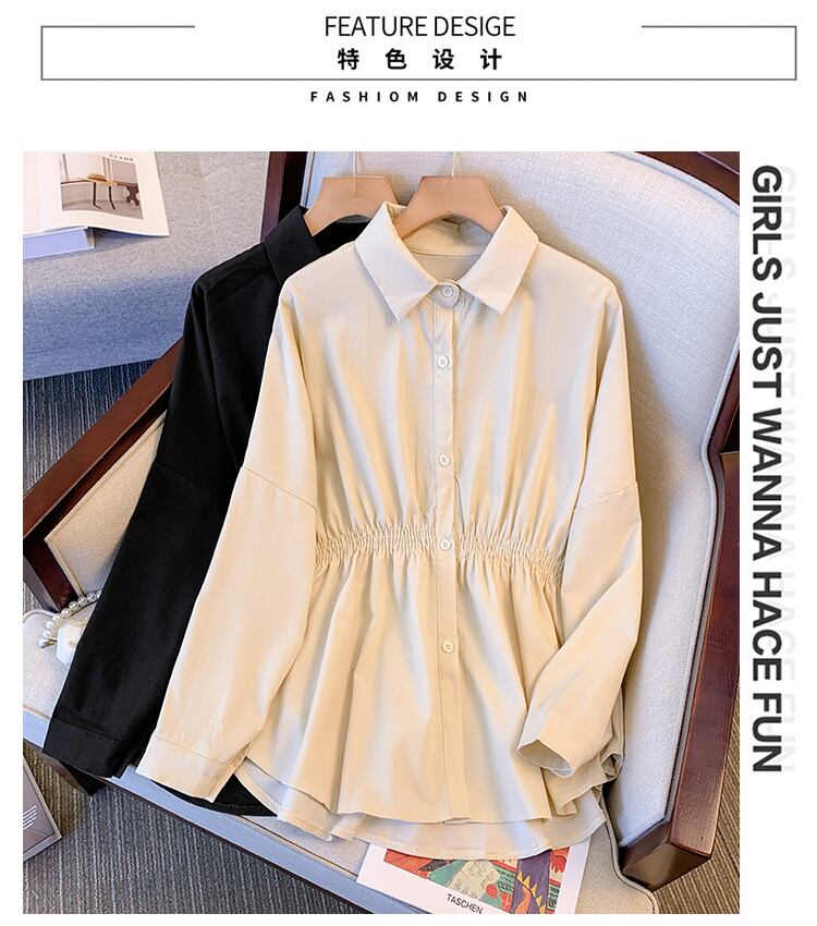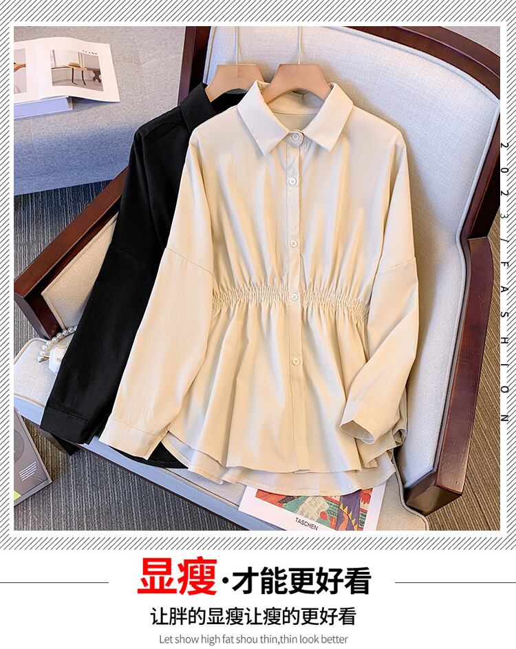 プラスサイズの婦人服 2023 春服ファットシスターズ新しいルーズポロカラーシャツ弾性ウエストオールマッチ長袖シャツ ロング エラスティック 伸縮 大きめサイズ スプリング 春物 8884162276581422
