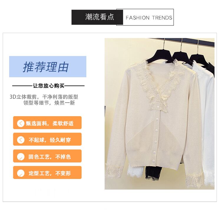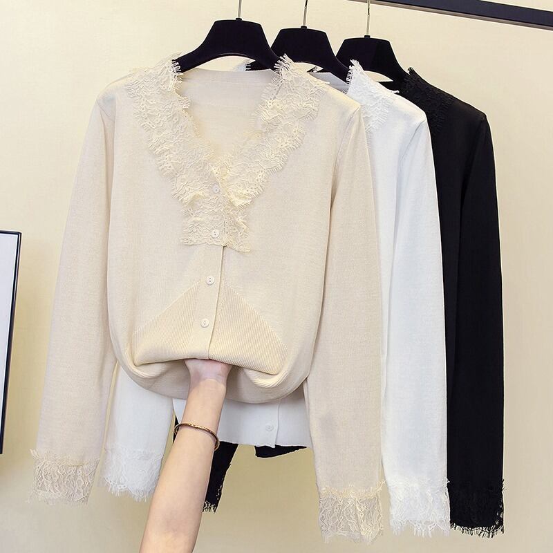 プラスサイズの婦人服 2023 トレンディな女性の春の新しい太った姉妹 eign スタイルのレースのセーター緩いオールマッチセーターカーディガン潮 大きめサイズ スプリング 春物 8884126087232473