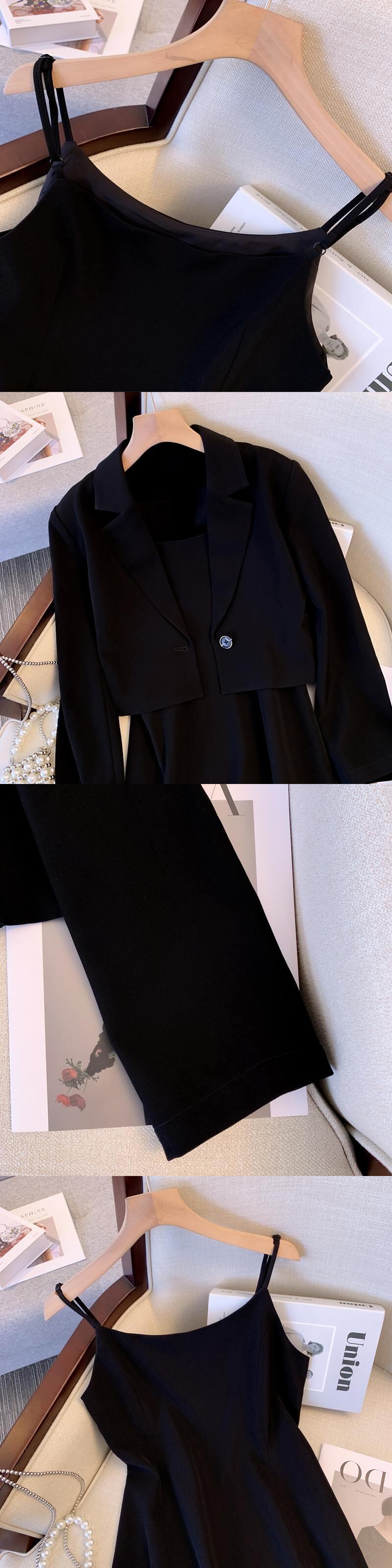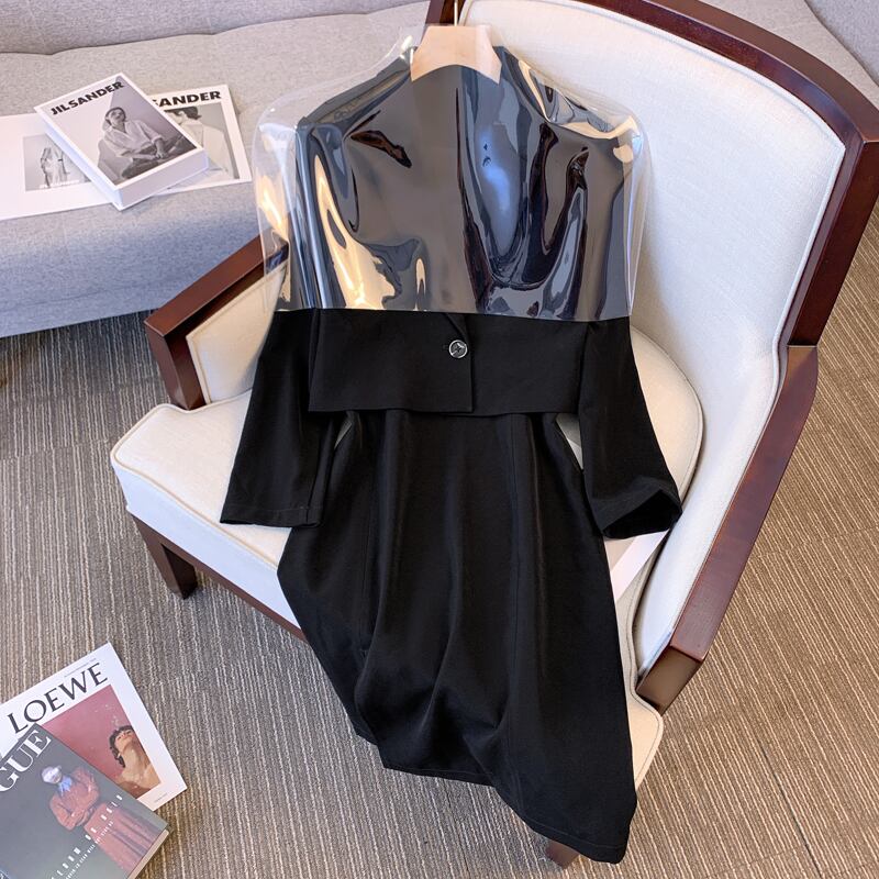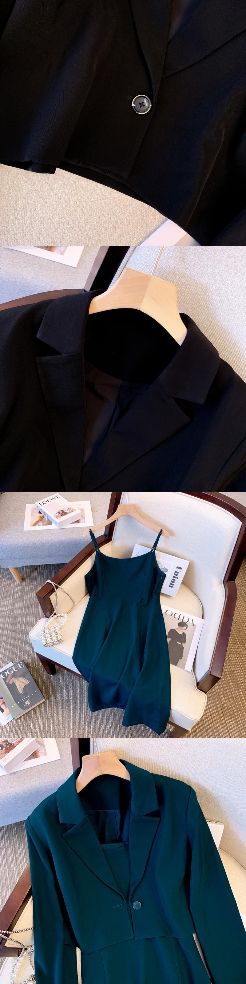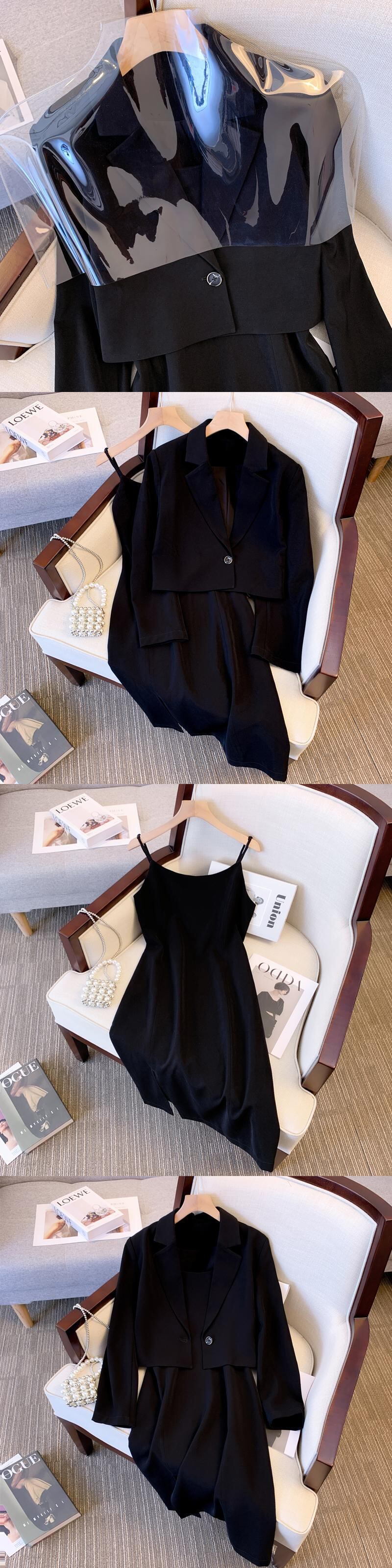 プラスサイズの婦人服 2023 春の新しいファットシスター年齢を減らすショートコートウエストストラップドレスツーピーススーツ 大きめサイズ スプリング 春物 8884178513549226