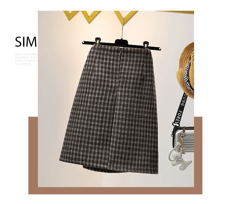 大きいサイズの婦人服 2023 太った姉妹春の新しい肥厚不規則な格子縞の弾性ウエストウールのスカートの女性 エラスティック 伸縮 大きめサイズ スプリング 春物 8884141832054575