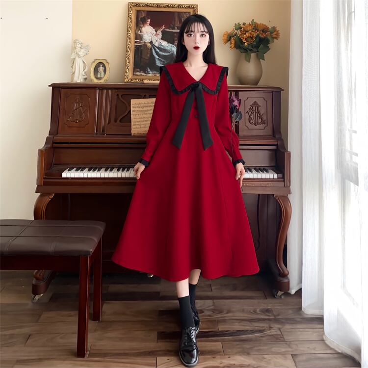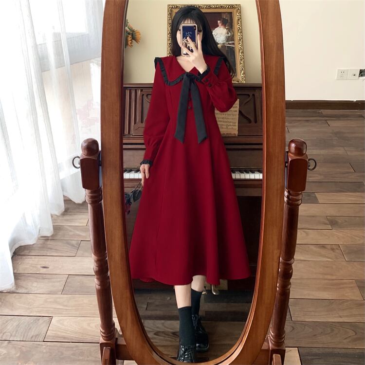 プラスサイズの婦人服 2023 トレンディな女性の春の新しい脂肪姉妹ヘップバーンスタイルウエストウエストレトロな気質ちょう結びドレス女性 リボン 大きめサイズ スプリング 春物 8884198294583133