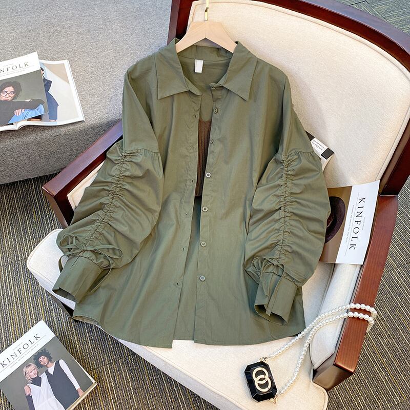 プラスサイズの婦人服 2023 脂肪姉妹春の新ファッション緩いストラップ巾着長袖シャツ女性ツーピースセット ロング 大きめサイズ スプリング 春物 888416713935352