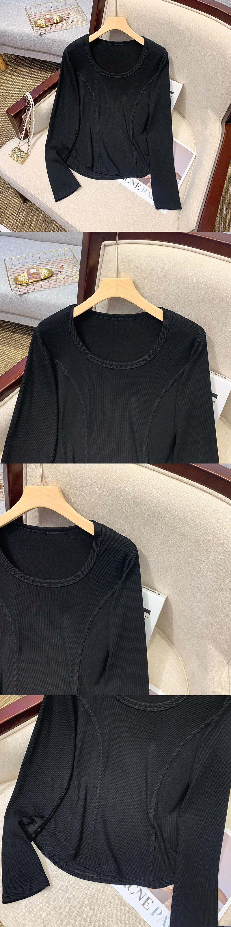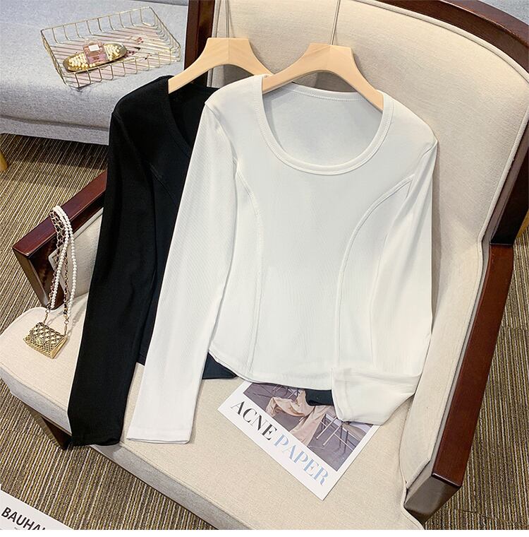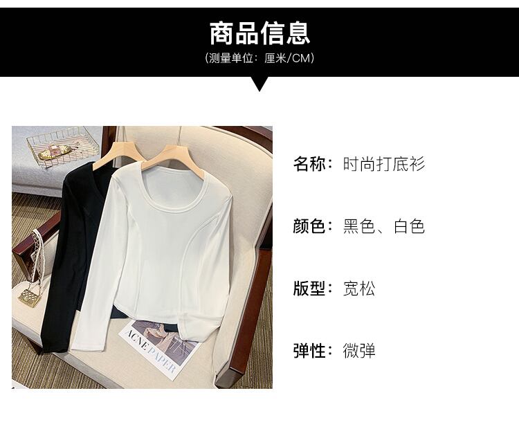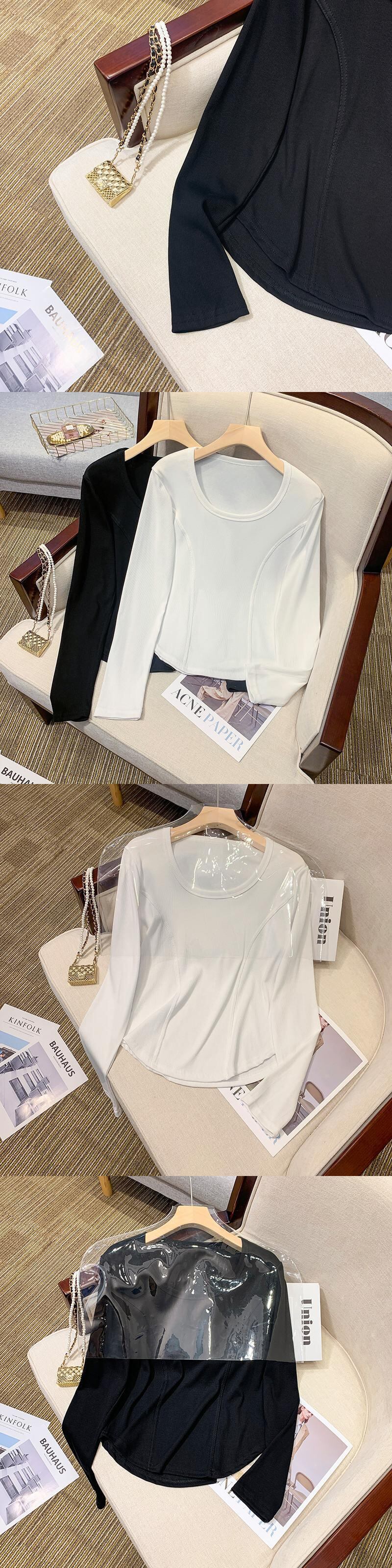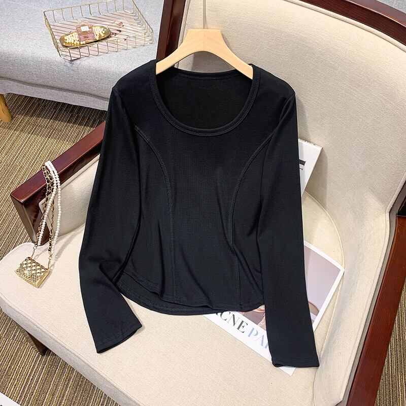 プラスサイズの婦人服 2023 ファットシスター春の新スリムフィット寛大な襟露出鎖骨長袖スリム底入れシャツ Tシャツ ロング 大きめサイズ スプリング 春物 8884177153638487