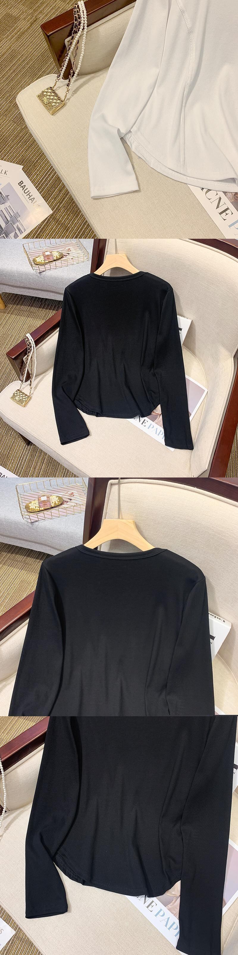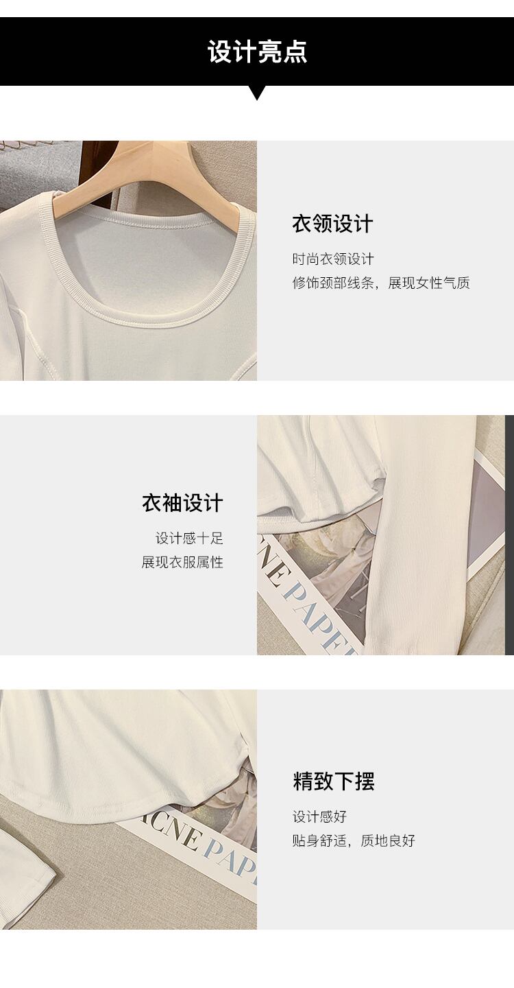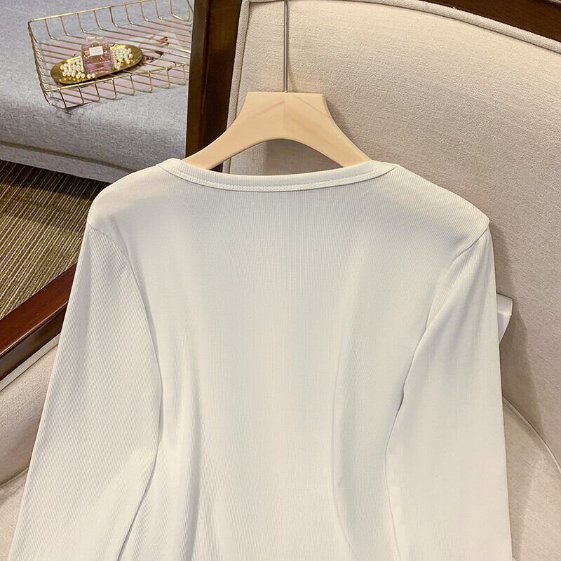 プラスサイズの婦人服 2023 ファットシスター春の新スリムフィット寛大な襟露出鎖骨長袖スリム底入れシャツ Tシャツ ロング 大きめサイズ スプリング 春物 8884177153638487