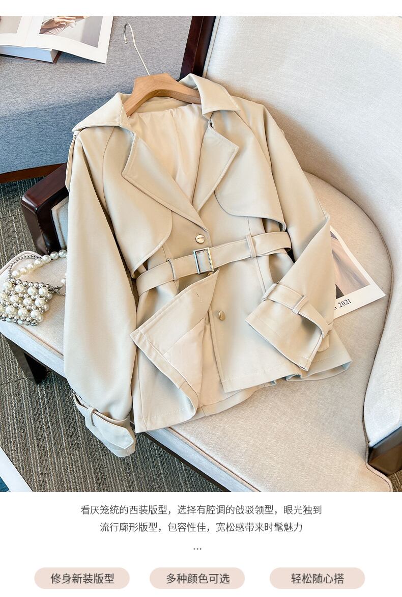大きいサイズの婦人服 2023 春服ファットシスターズ新しいスタイルの洋風ベルト痩身ショート長袖ラペルコート女性 ロング 大きめサイズ スプリング 春物 ハーネス 8884141593014641