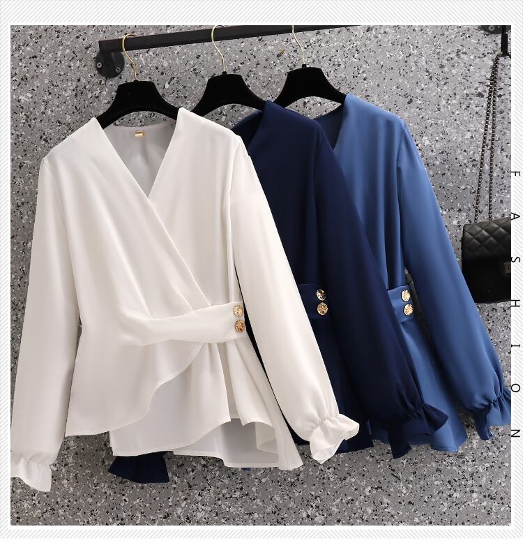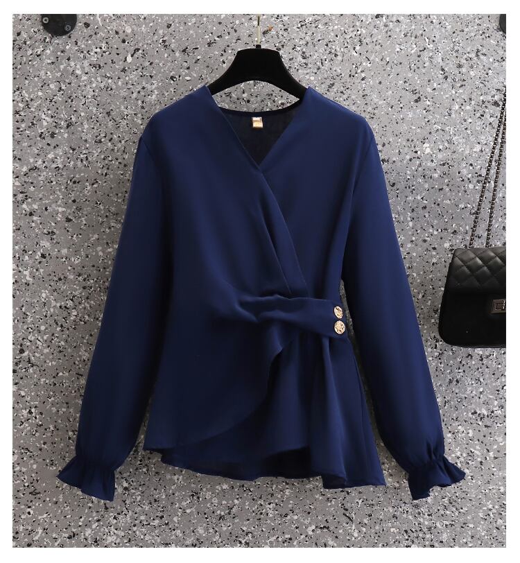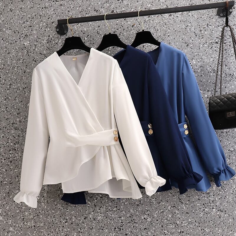 プラスサイズの婦人服 2023 トレンディな女性の春の新しい太った姉妹ウエスト痩身洋風デザインセンス気質シフォンシャツトレンディ 大きめサイズ スプリング 春物 8884154636233197