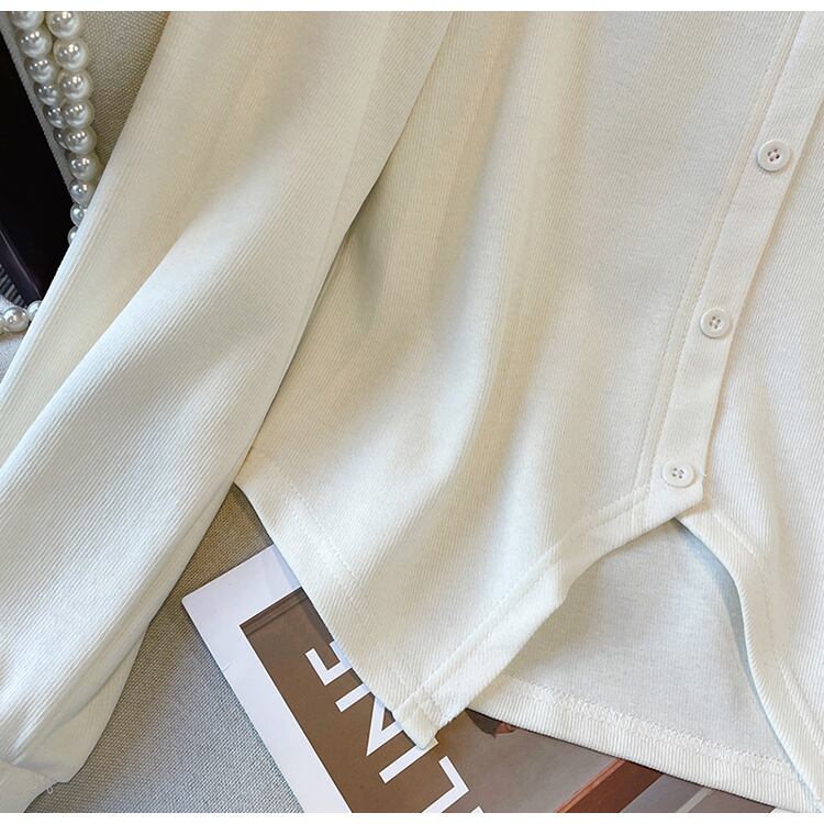 プラスサイズの婦人服 2023 春脂肪姉妹新ファッション痩身カーディガンラペル長袖トップ Tシャツ女性 ロング 大きめサイズ スプリング 春物 8884183025616623
