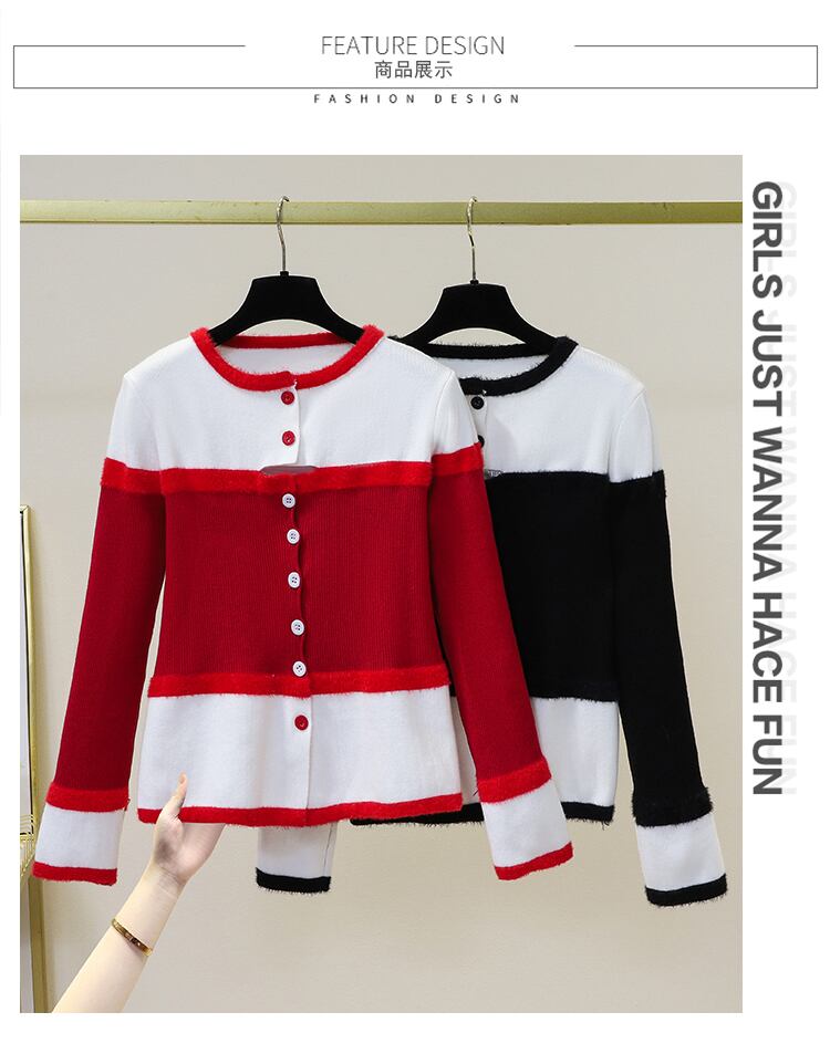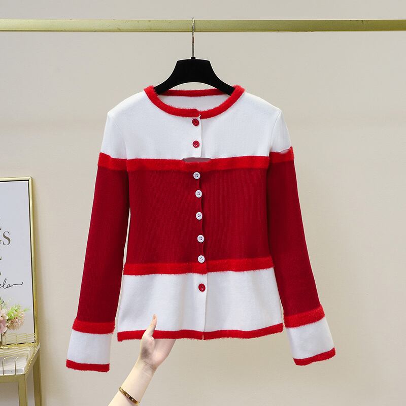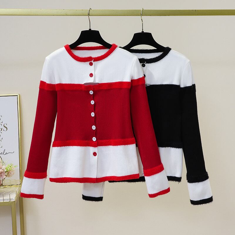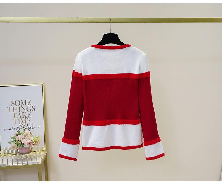 プラスサイズの婦人服 2023 春の新しいファットシスターファッション年齢減少気質配色デザインセンス万能ニットセーター女性 大きめサイズ スプリング 春物 8884133561386706