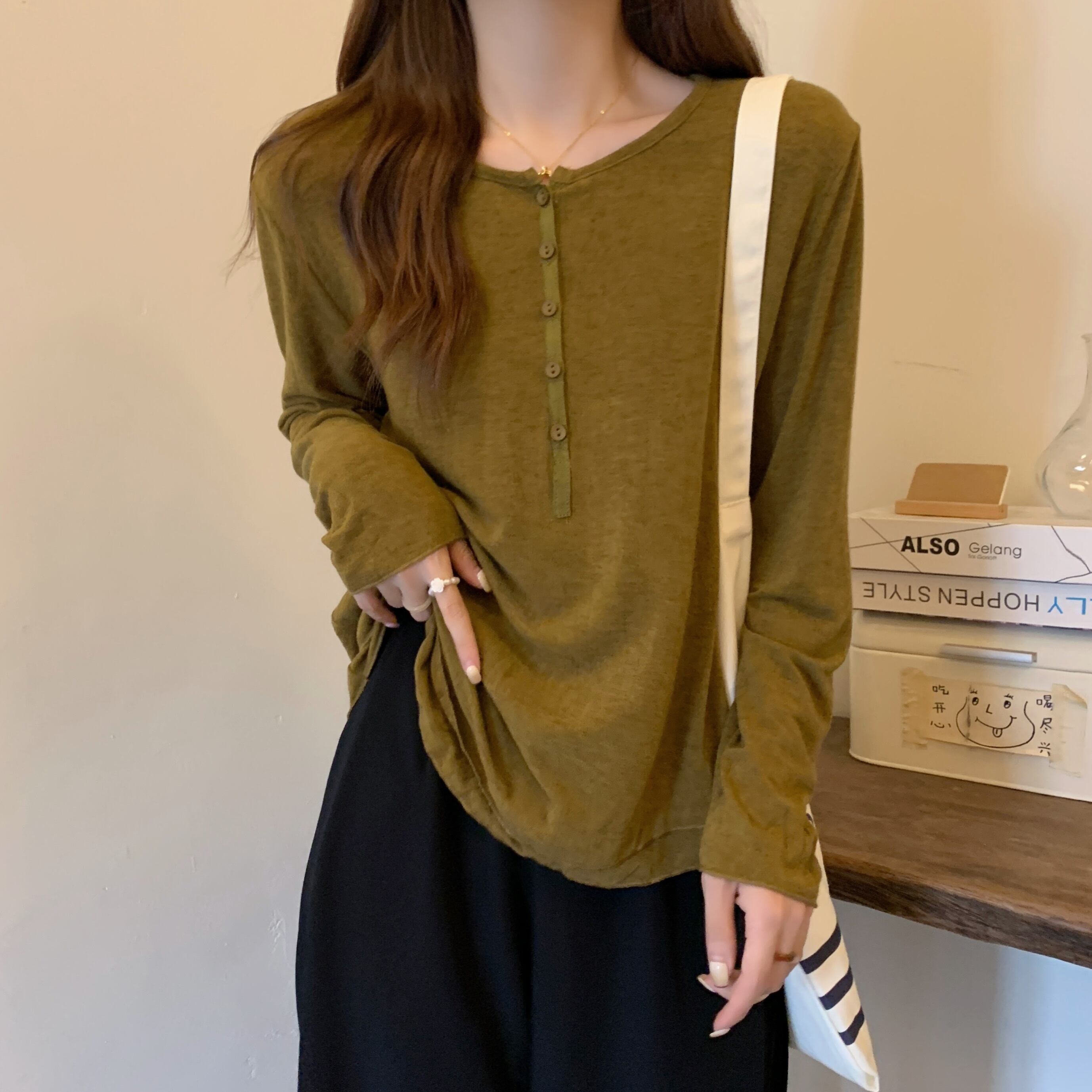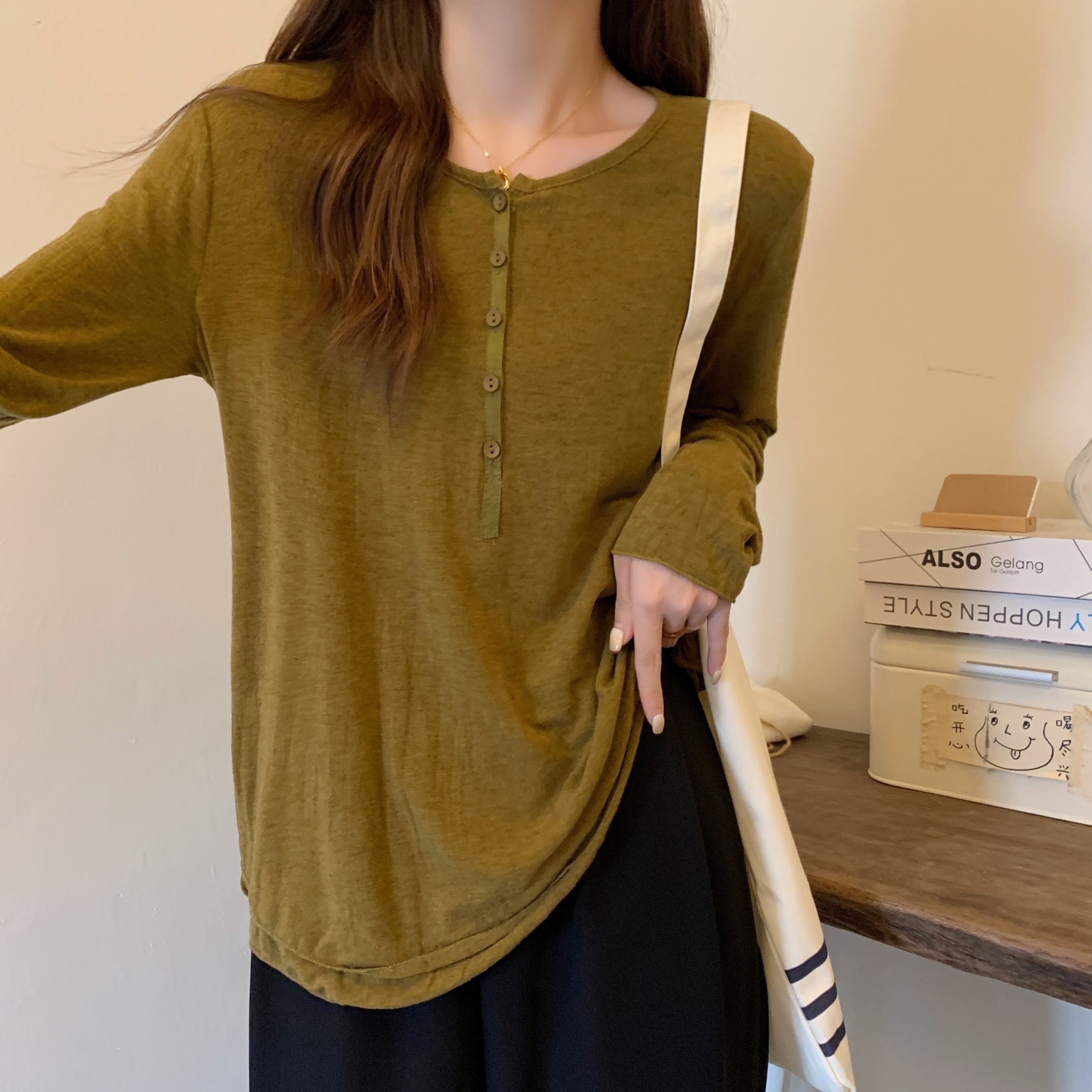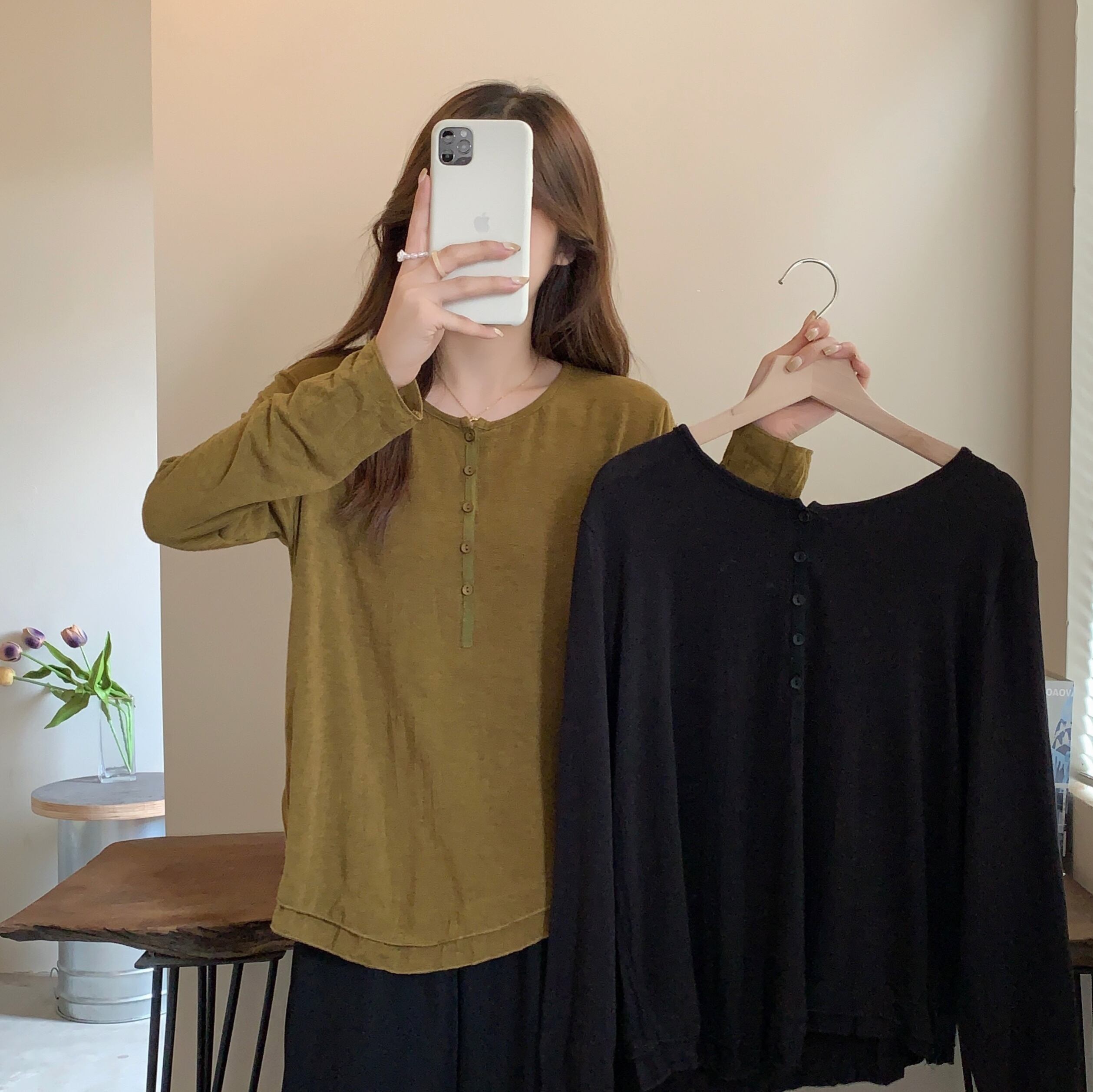 大きいサイズの婦人服 2023 春服ファット シスターズ新しいルーズで薄いボトムス トップス万能で薄い長袖 T シャツ ロング 大きめサイズ スプリング 春物 Tシャツ 8884121982465082