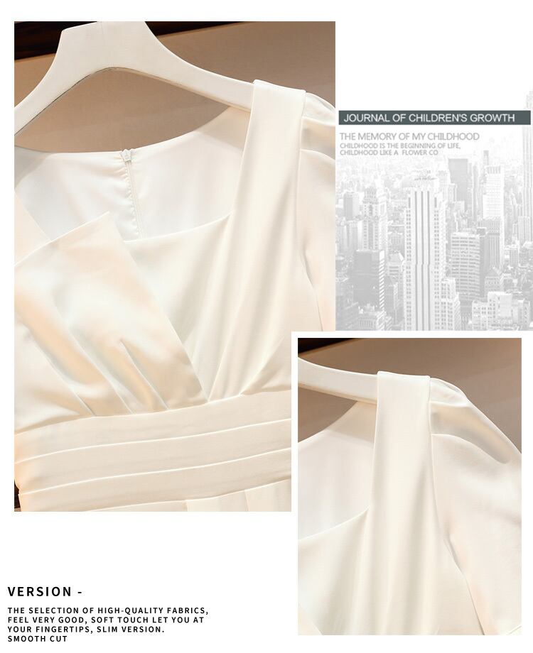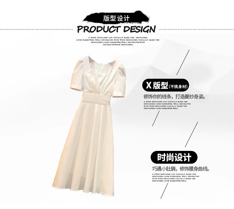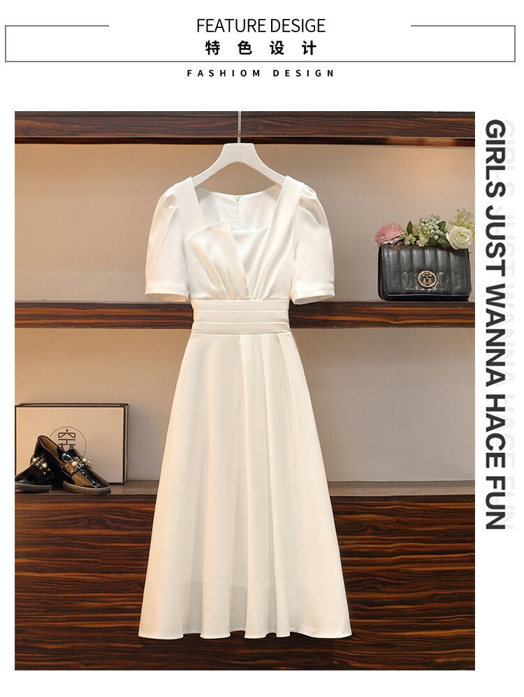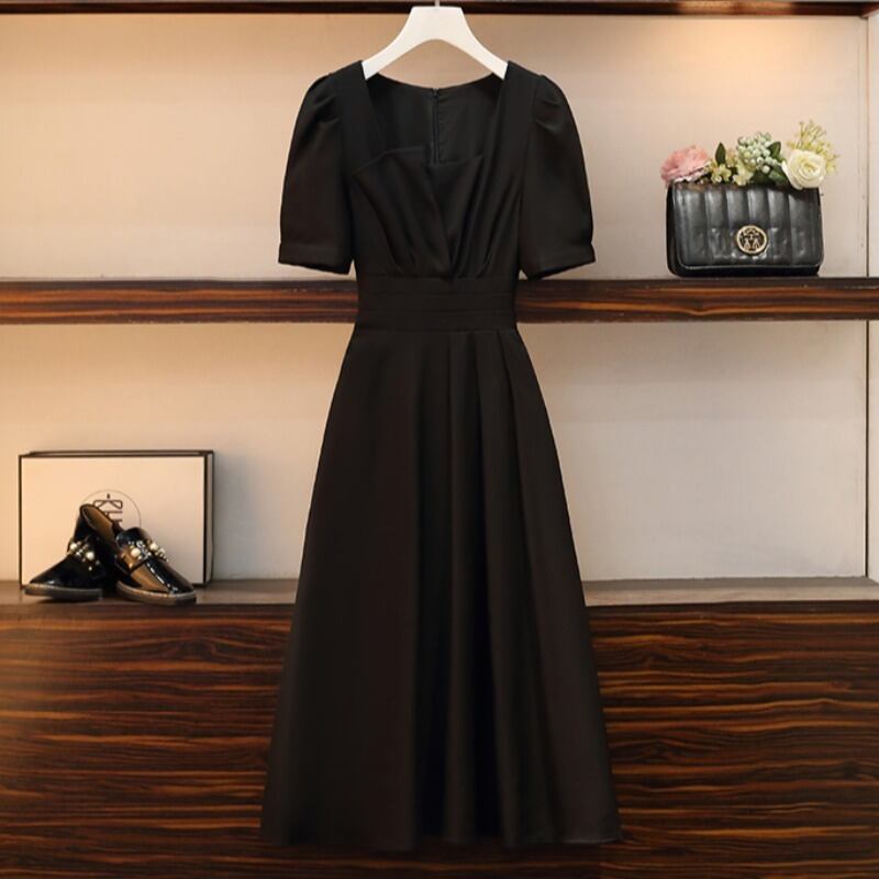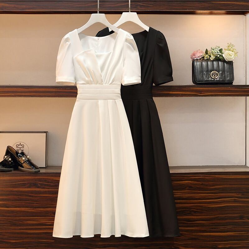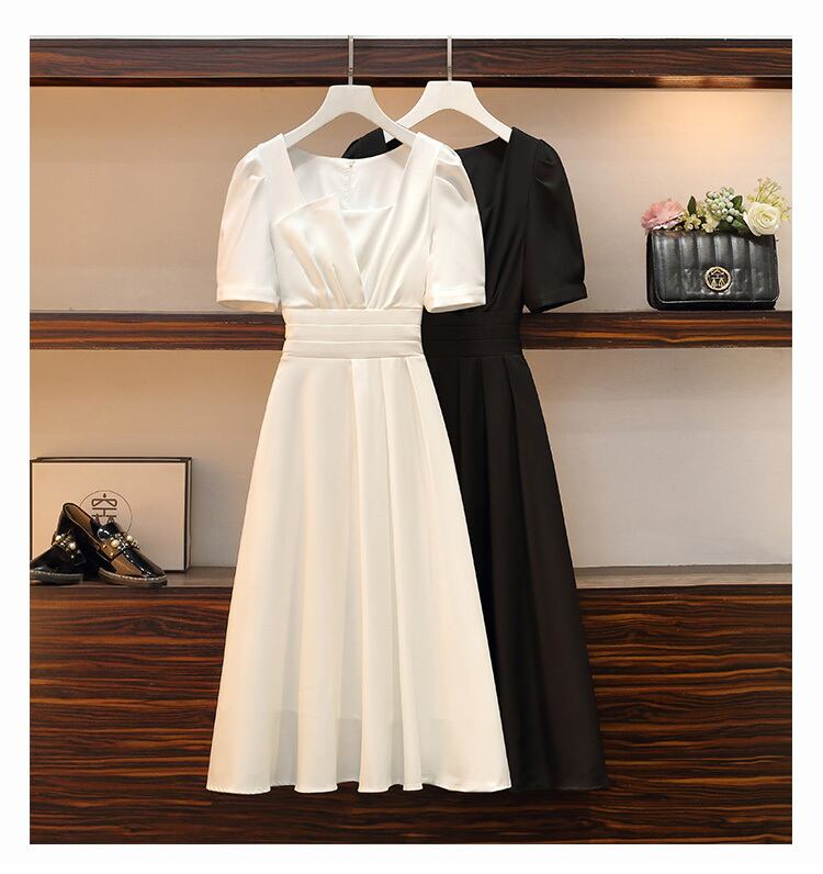 プラスサイズの婦人服 2023 夏の新しいファットシスター気質ヘップバーンスタイルのスクエアカラー年齢減少フレンチウエストドレス 大きめサイズ サマー 夏物 スクウェア 8884110969383161