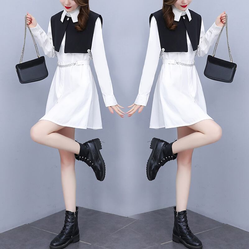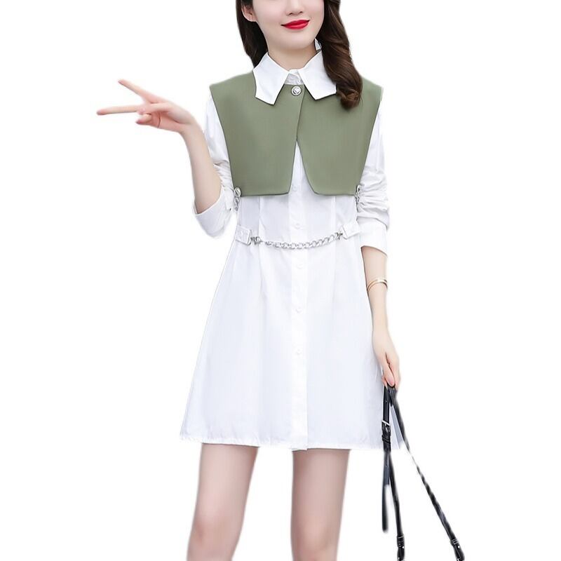 プラスサイズの婦人服 2023 トレンディな女性の春の新しい太った姉妹ファッションデザインチョッキツーピースドレス 大きめサイズ スプリング 春物 8884189785875092