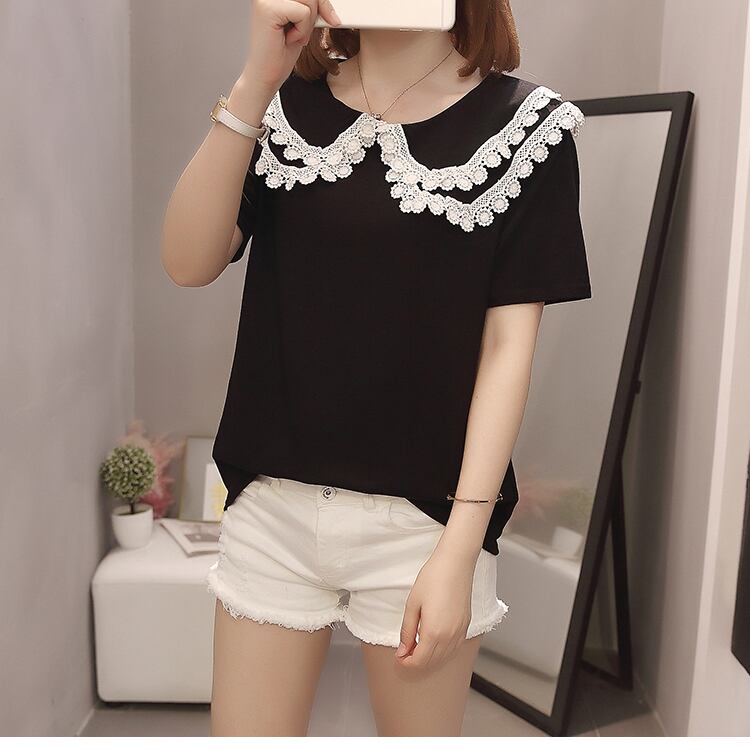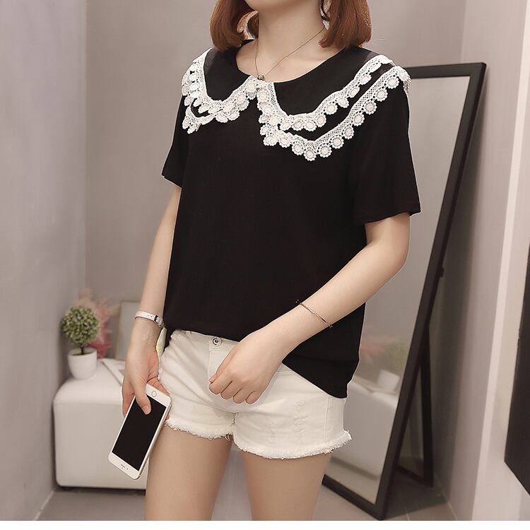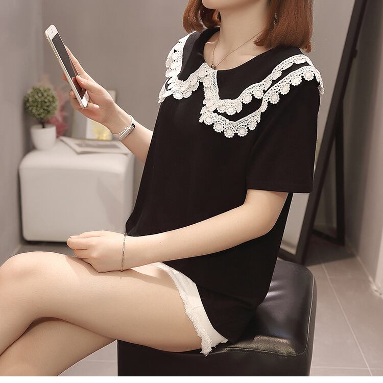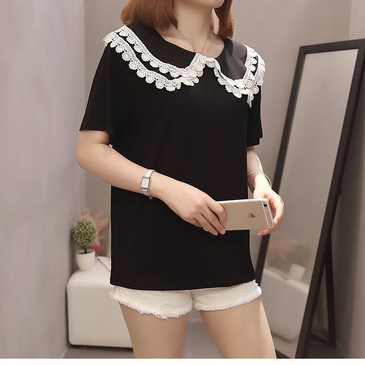 大きいサイズの婦人服 2023 夏服の新しいファットシスターファッションルーズで薄い人形の襟のデザイン半袖トップ 大きめサイズ サマー 夏物 8884190577480155