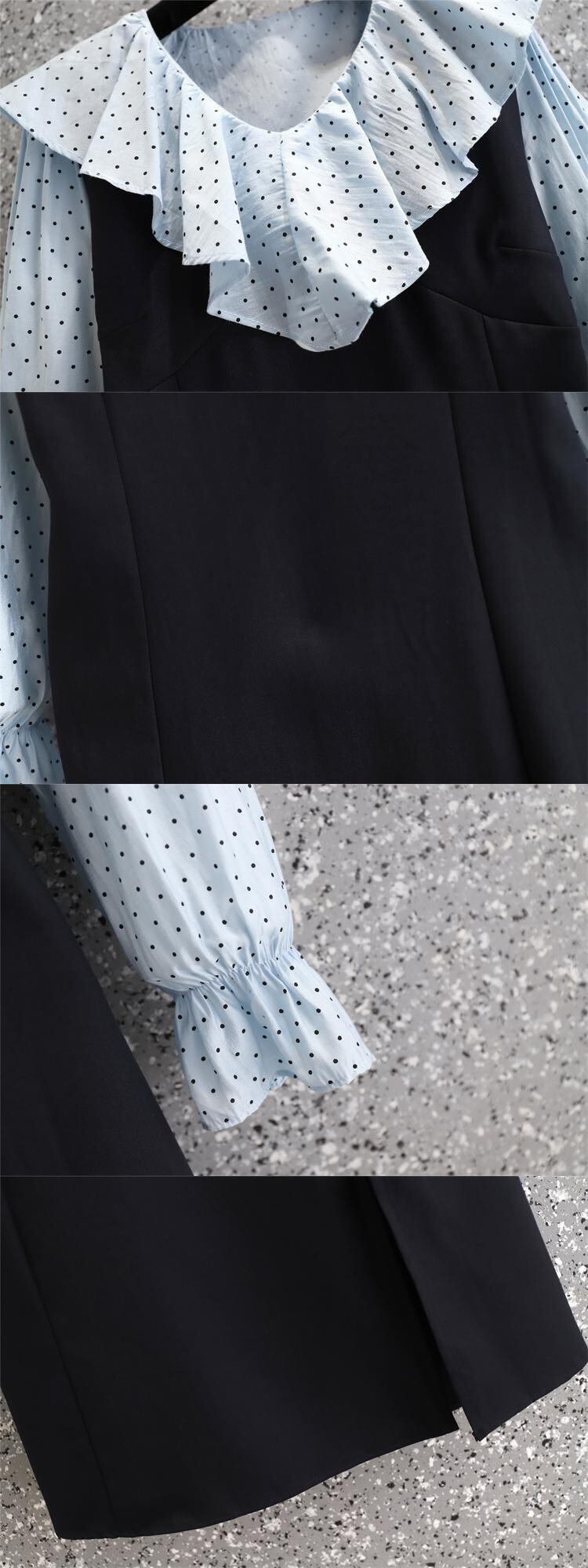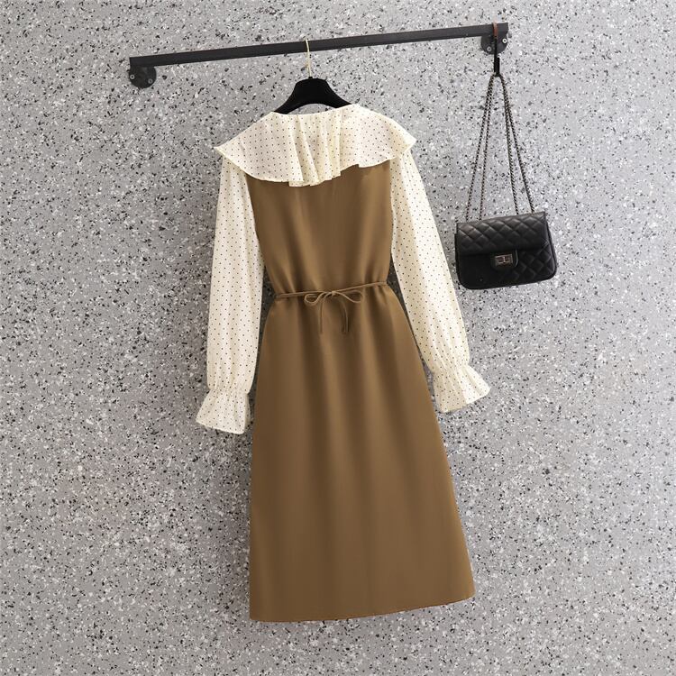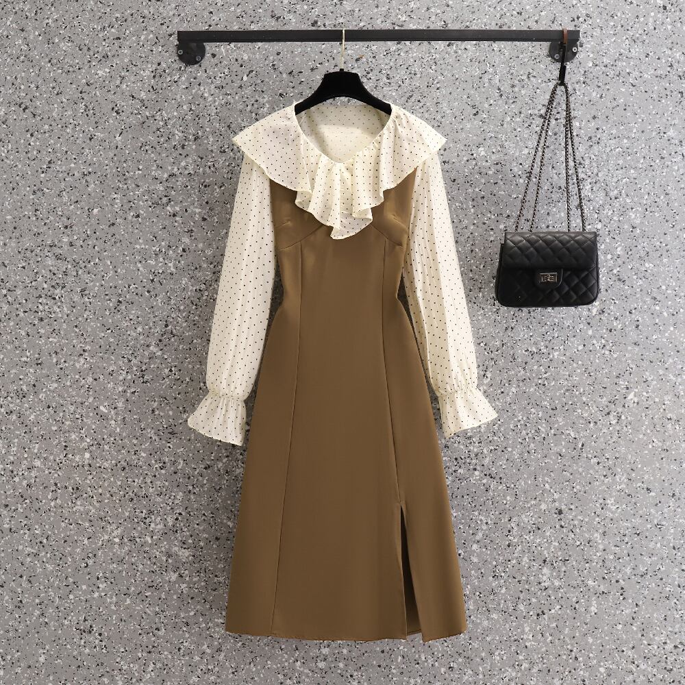 大きいサイズの婦人服 2023 春の新しい太った姉妹気質スプライシング デザイン センス偽ツーピース スリット ドレス女性 大きめサイズ スプリング 春物 8884120255333812