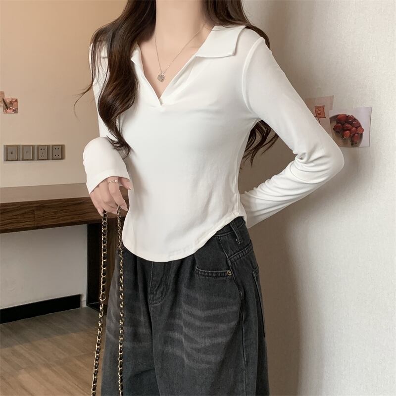 大きいサイズの婦人服 2023 トレンディな女性の春の新しい太った姉妹ポロ襟純粋な欲望スタイル デザイン センス スリム 無地 Tシャツ 大きめサイズ スプリング 春物 ピュア ソリッドカラー 8884169328439872