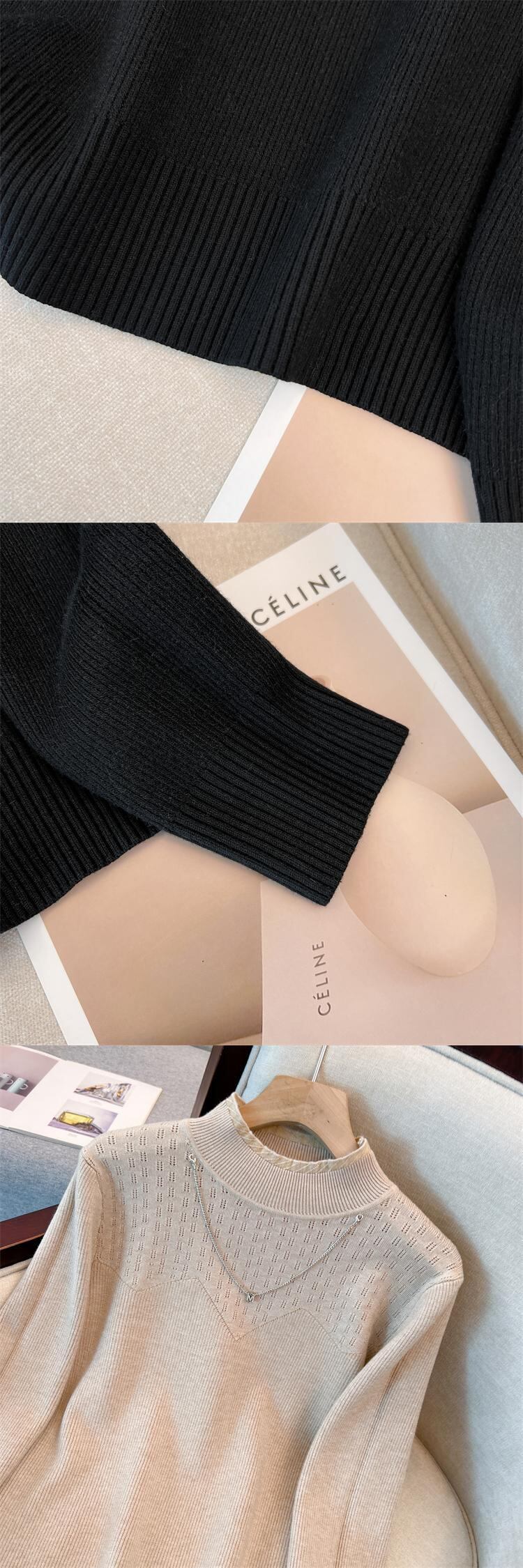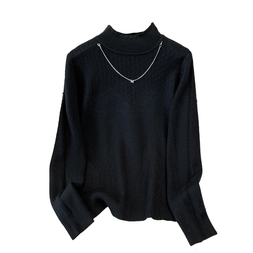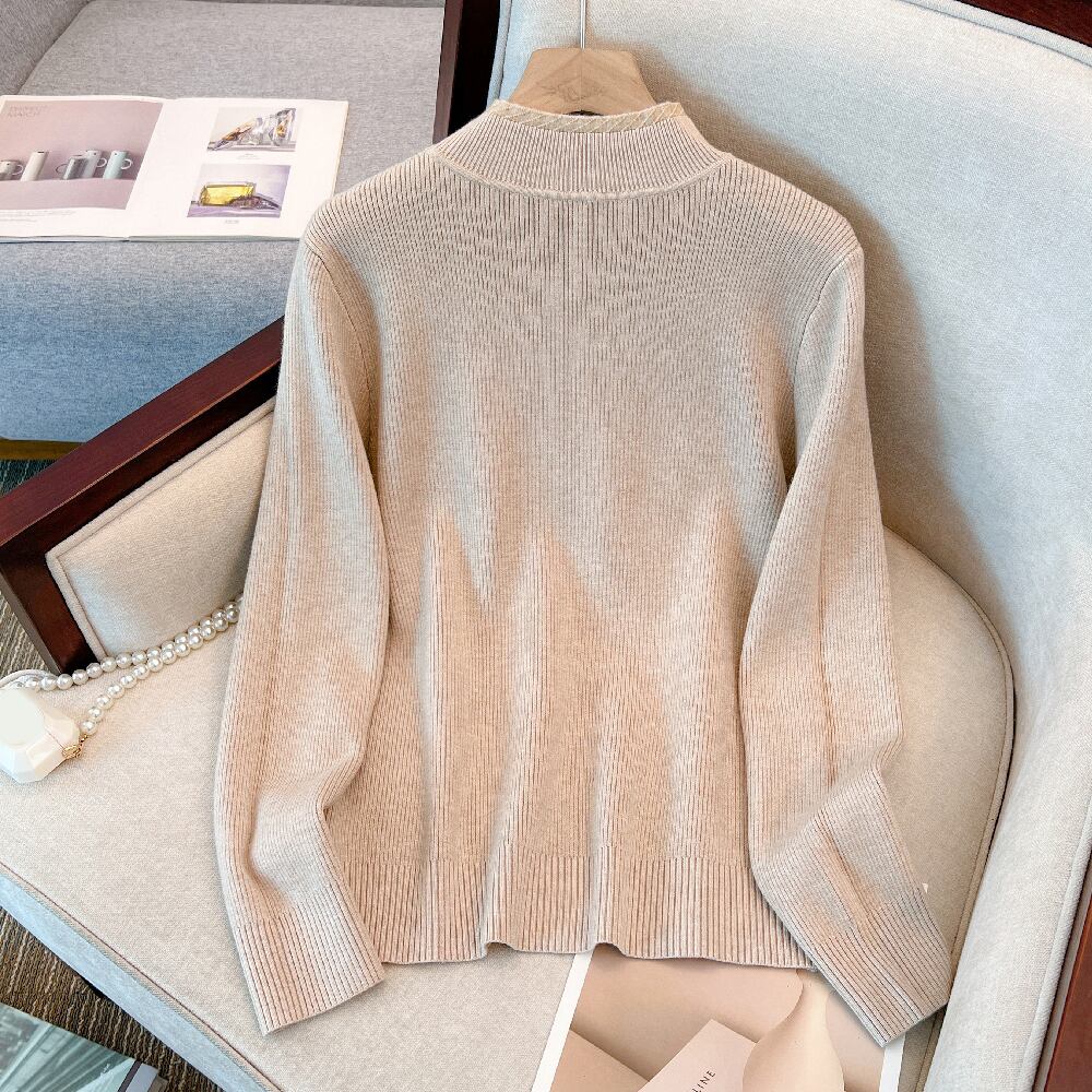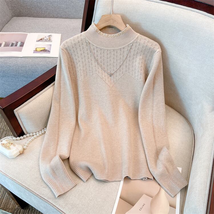 プラスサイズの婦人服 2023 ファットシスター春の新ファッションチェーンハーフハイカラー底入れシャツスリムセーター女性 大きめサイズ スプリング 春物 8884170844427666