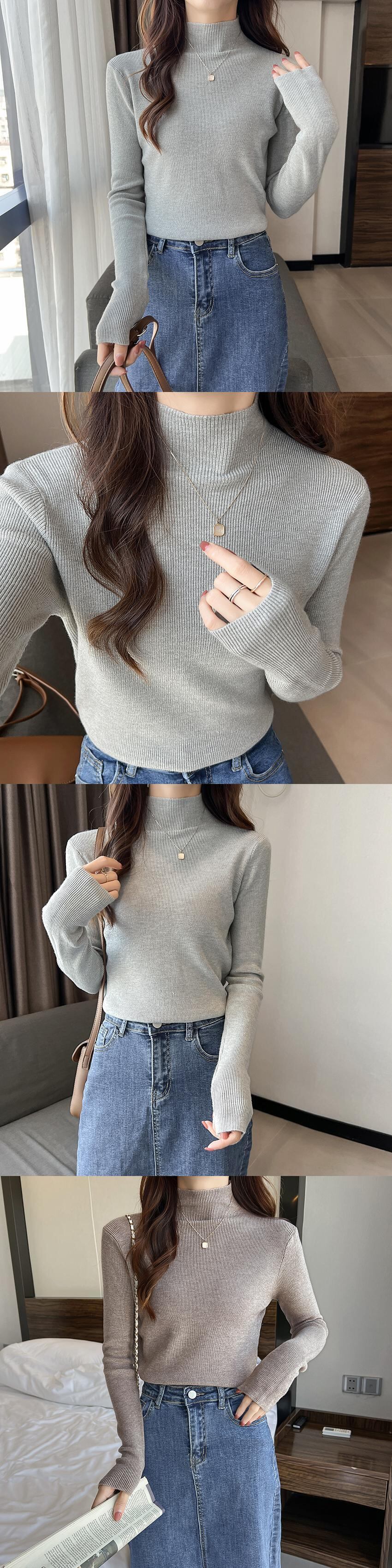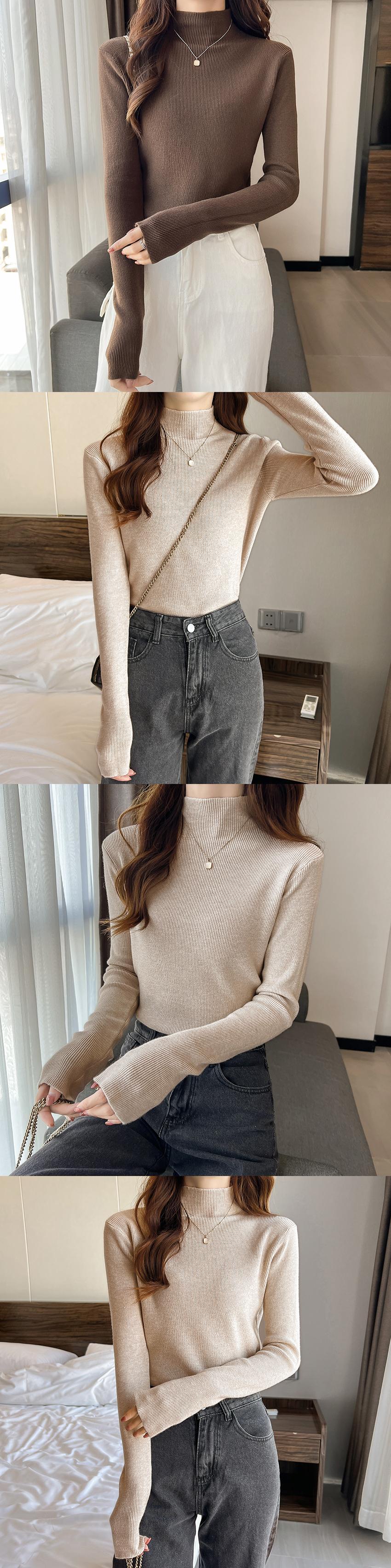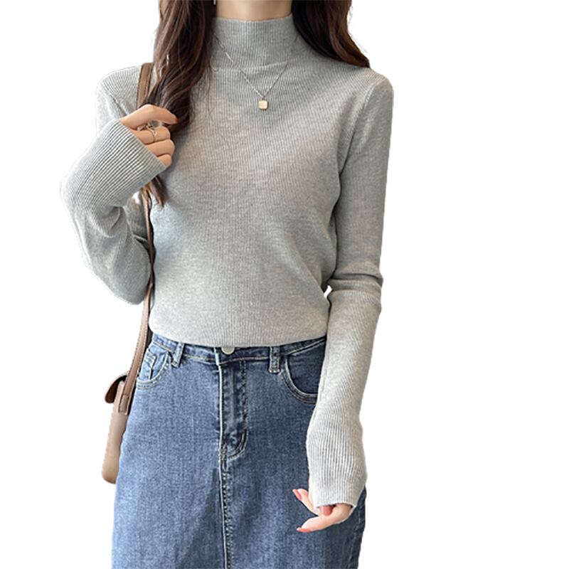 大きいサイズの婦人服 2023 トレンディな女性の春の新しい太った姉妹に見える薄いニットのハーフハイカラーオールマッチ長袖ボトムスセーターの女性 ロング 大きめサイズ スプリング 春物 8884144335807989
