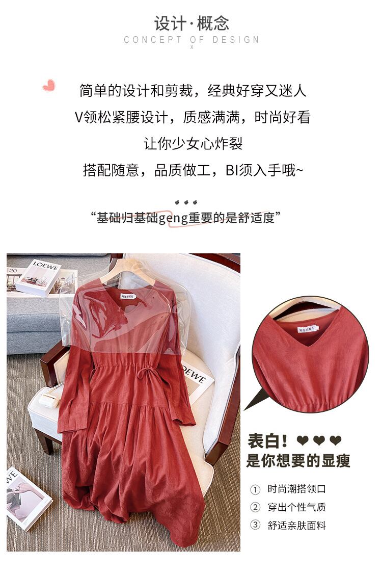 大きいサイズの婦人服2023ファットシスター春の新作ダブルタイアンクルドレスルーズスリムvネックドレス女性 大きめサイズ スプリング 春物 8884119119161339