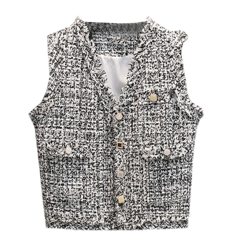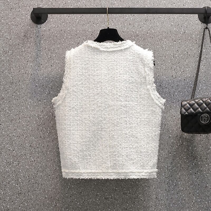プラスサイズの婦人服 2023 トレンディな女性の春の新しいファットシスターファッション老化ツイードポケットベストジャケット女性 大きめサイズ スプリング 春物 8884165372686374