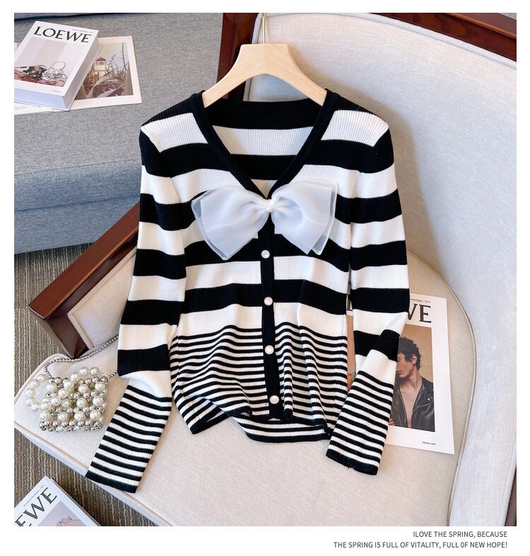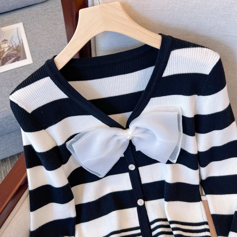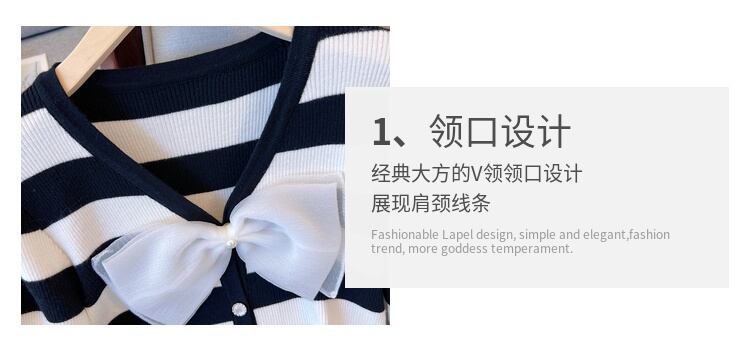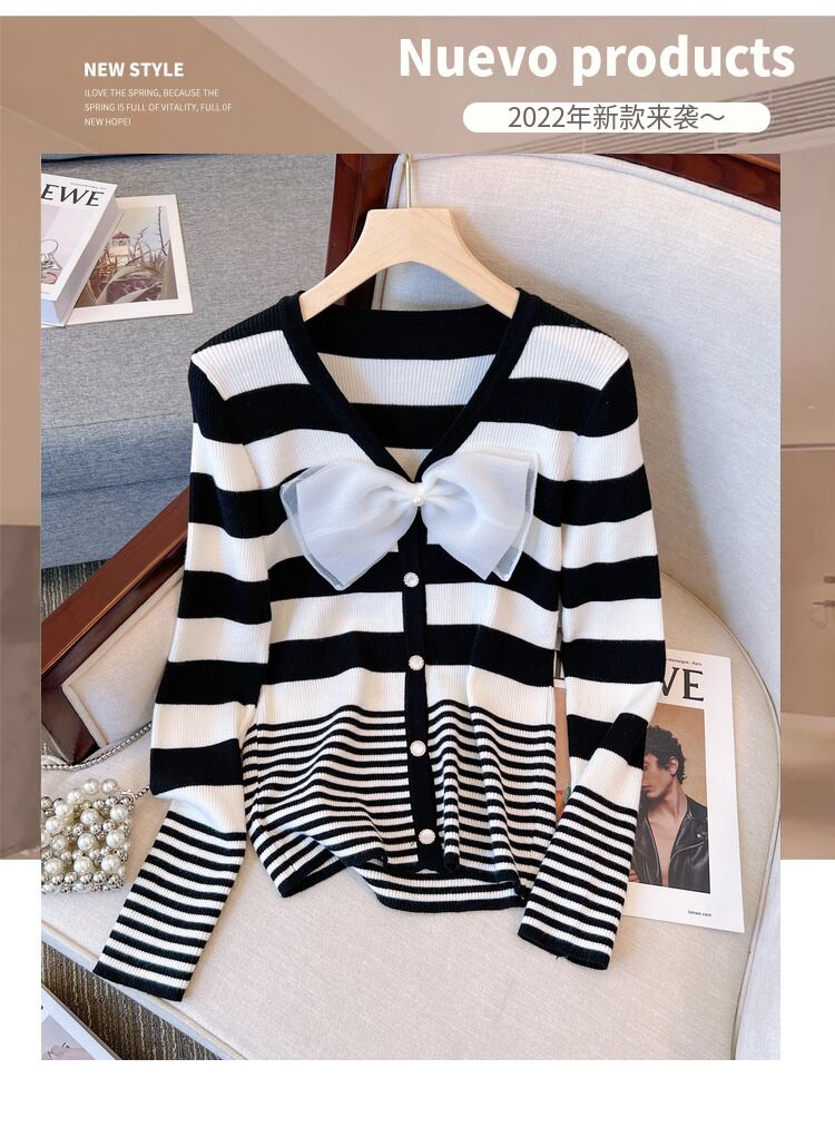 プラスサイズの婦人服 2023 ファットシスター春の新ストライプ v ネックニット底入れシャツデザインセンスカラーコントラストトップ女性 大きめサイズ スプリング 春物 Vネック 8884174825974095