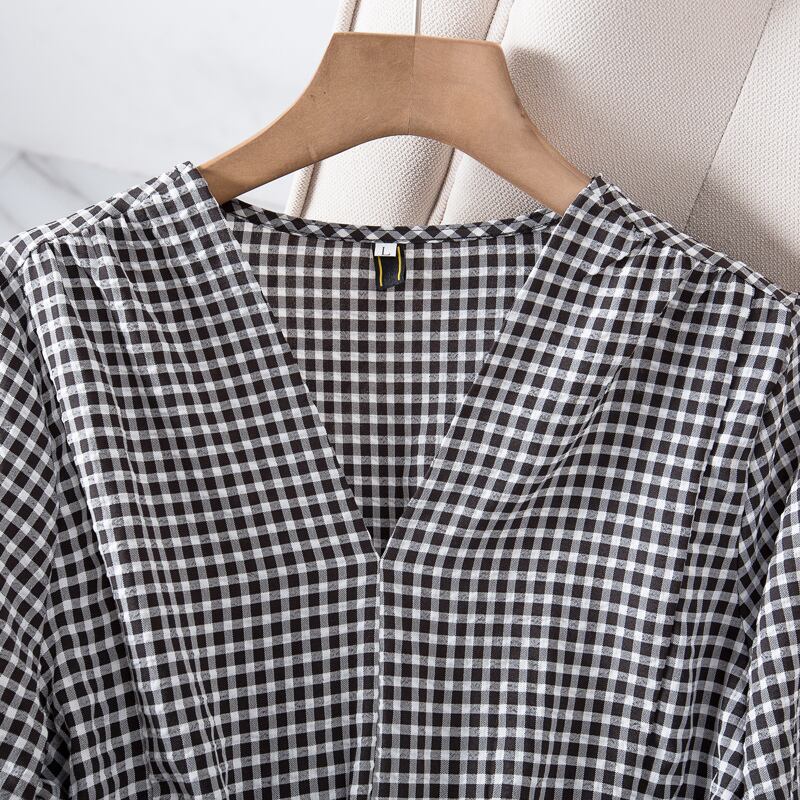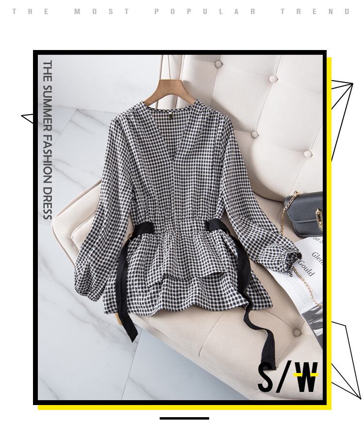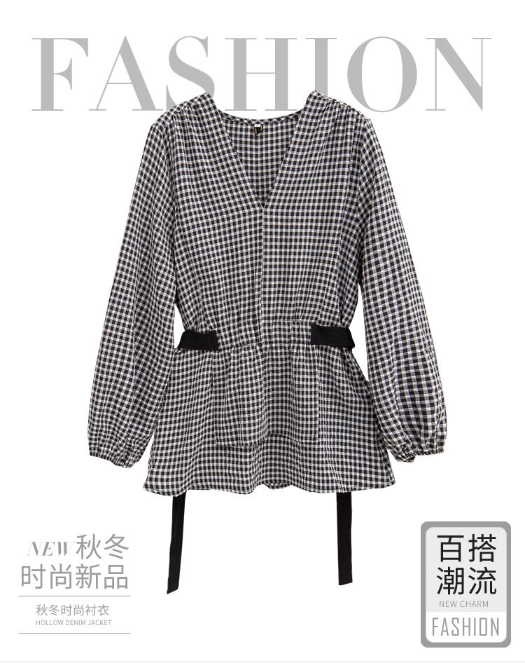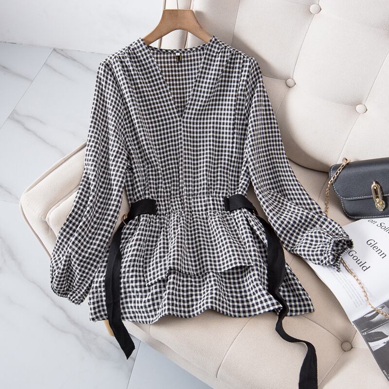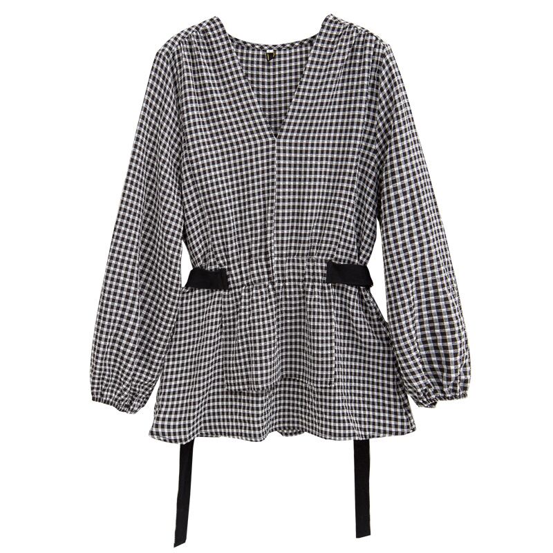プラスサイズの婦人服 2023 ファットシスター春の新しい年齢を減らすウエスト長袖トップ気質スリムな格子縞のシャツの女性 ロング 大きめサイズ スプリング 春物 8884132076964547