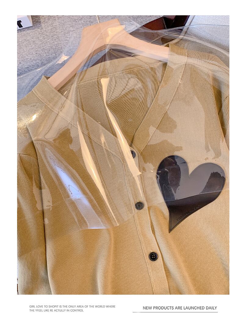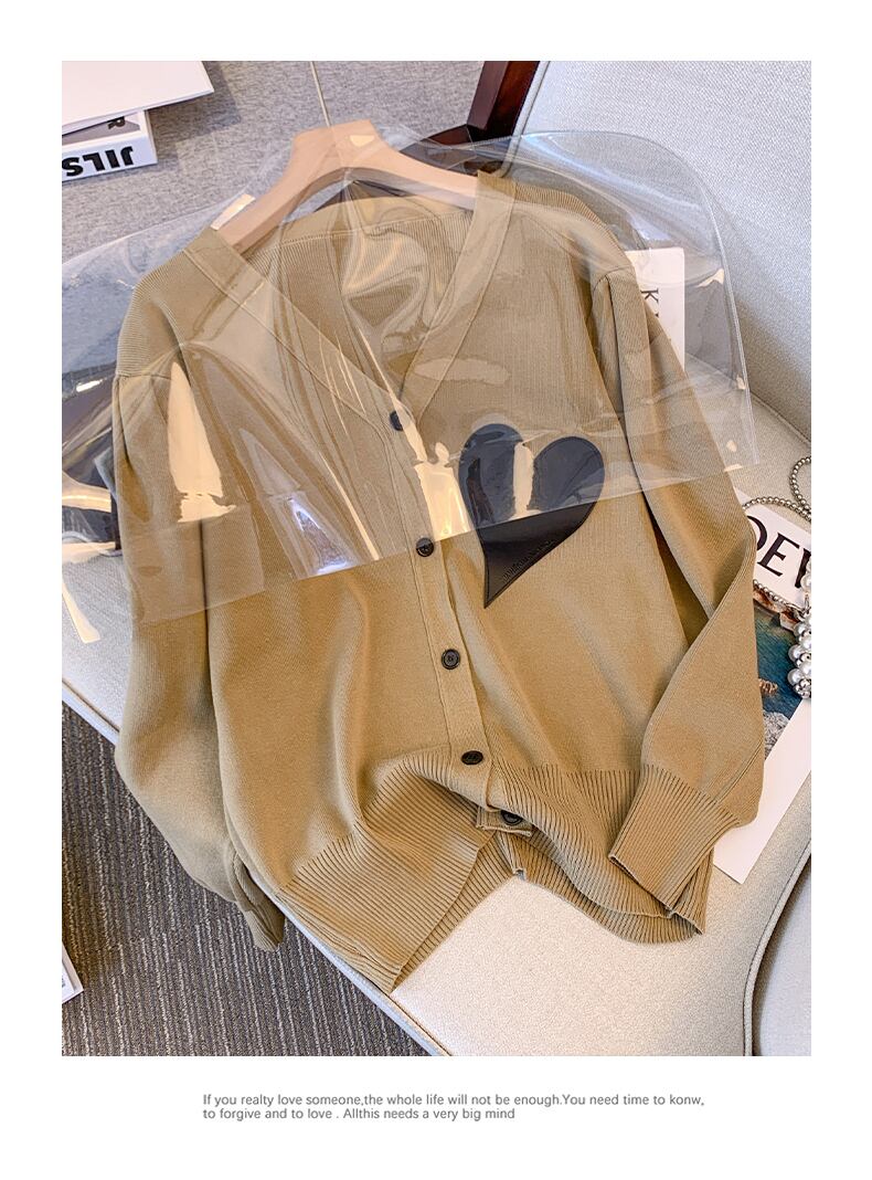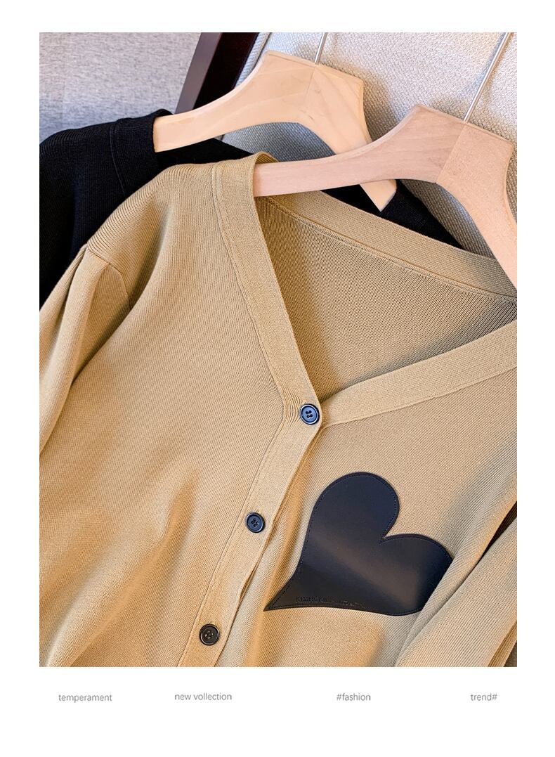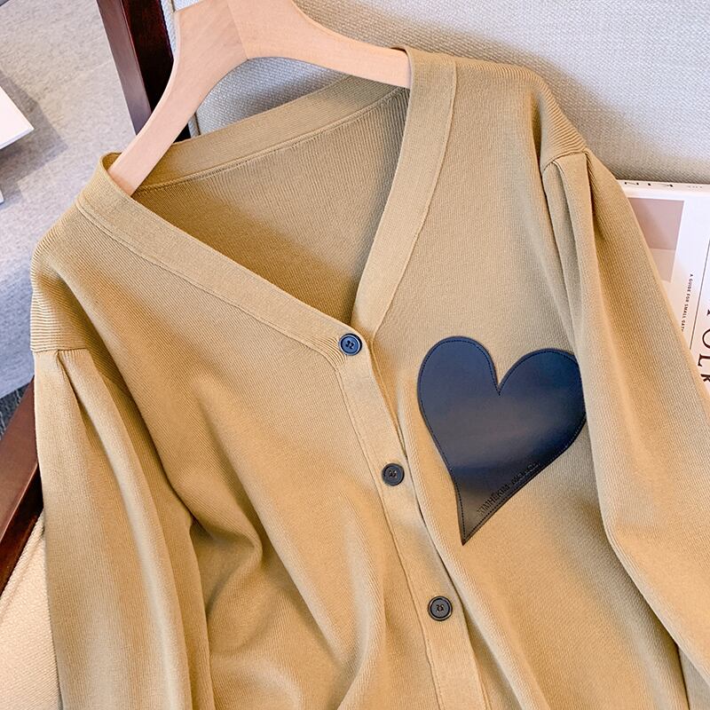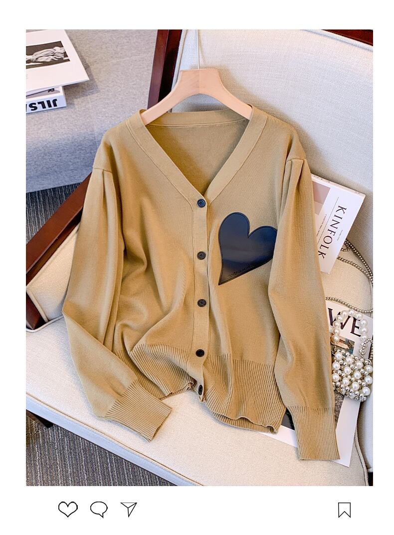 プラスサイズの婦人服 2023 ファットシスター春の新 eign スタイルの愛ニットカーディガントップルーズオールマッチセーター女性 大きめサイズ スプリング 春物 8884163656052966