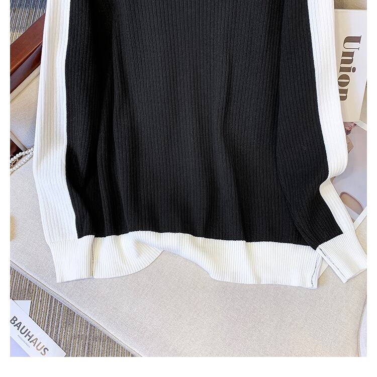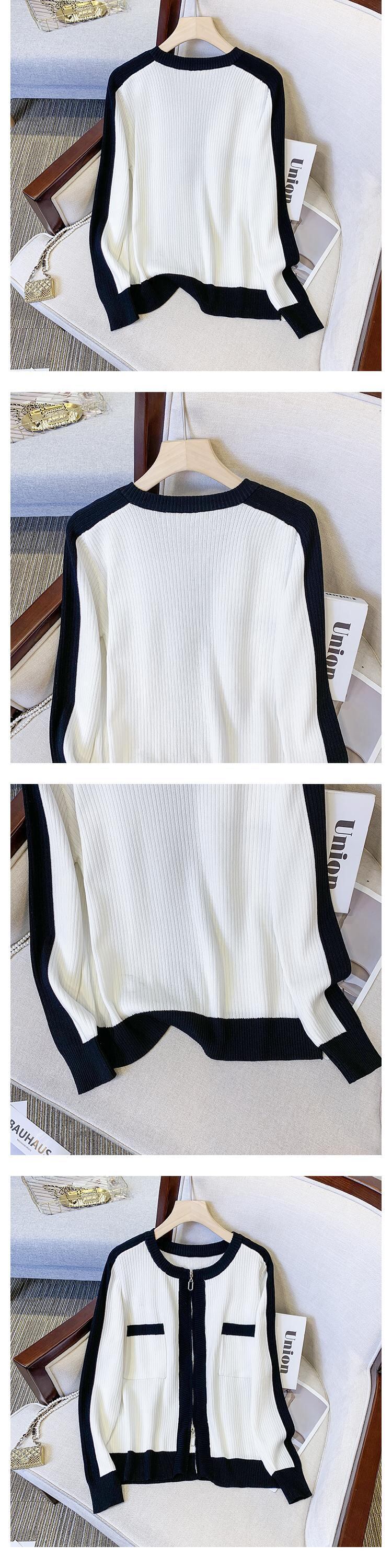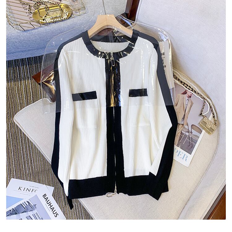 プラスサイズの婦人服 2023 ファットシスター春の新ファッションスリムステッチコントラストカラーニットセータージッパーカーディガントップ 大きめサイズ スプリング 春物 8884183669496481