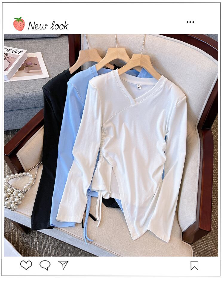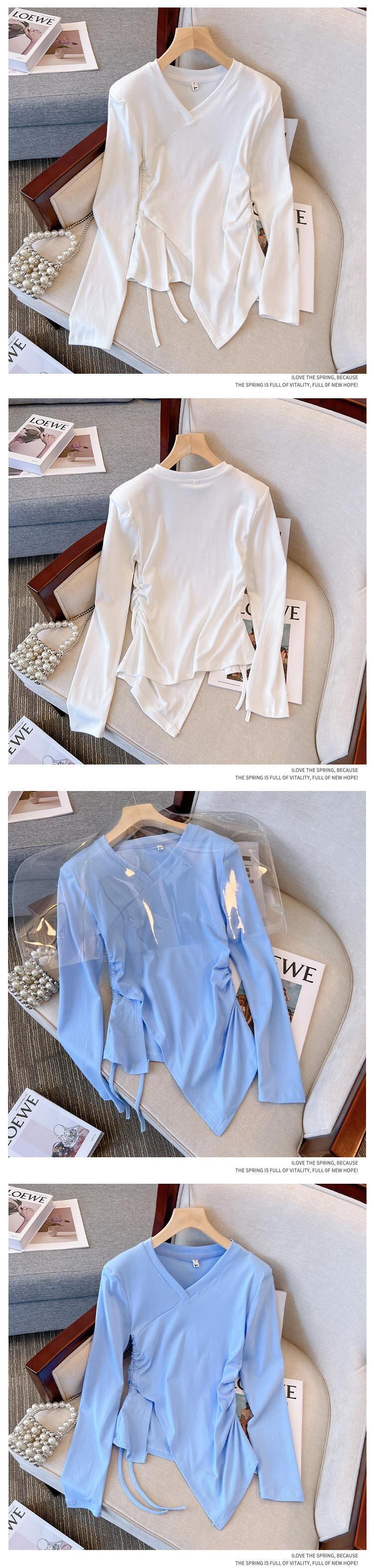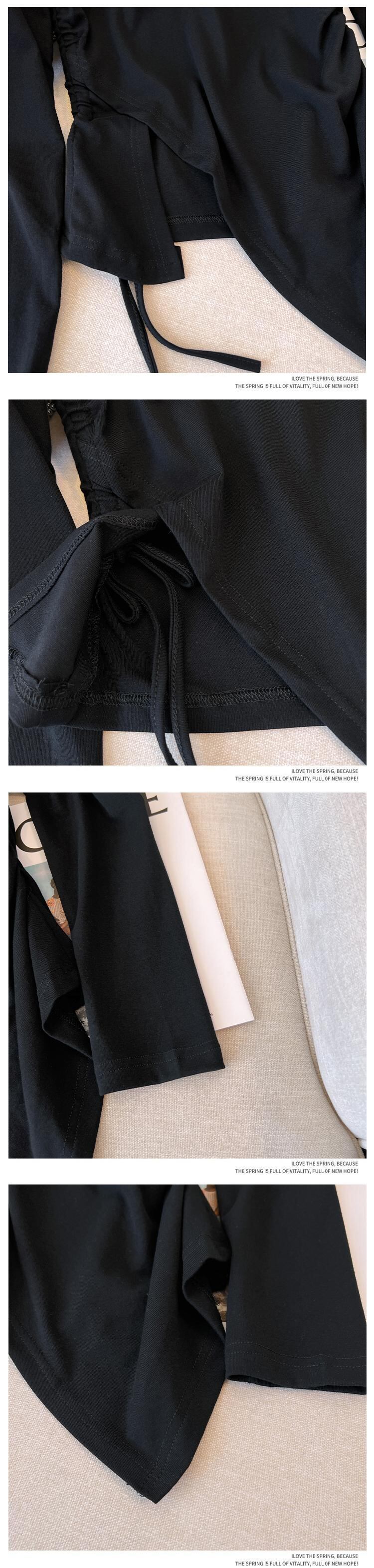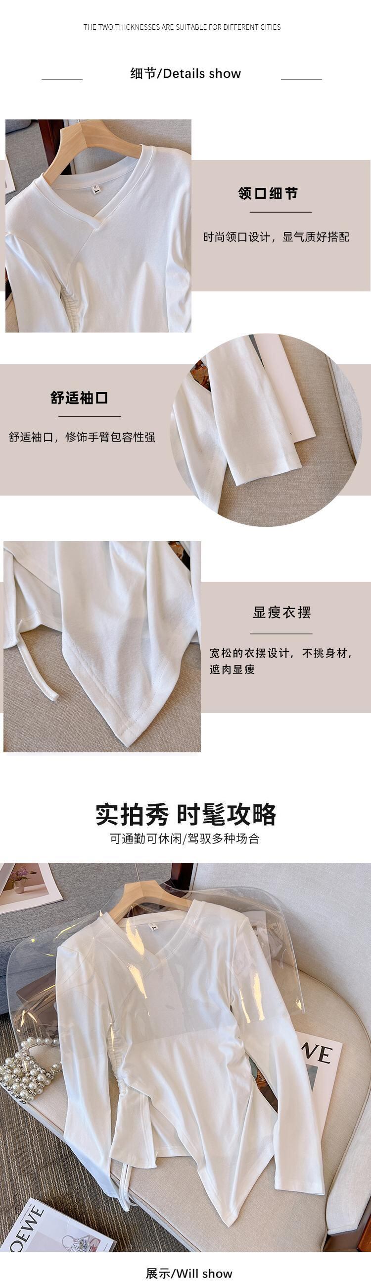プラスサイズの婦人服 2023 トレンディな女性の春の新しい太った姉妹無地薄い不規則な長袖底入れ Tシャツトップ女性 ロング 大きめサイズ スプリング 春物 ソリッドカラー 8884143431266145