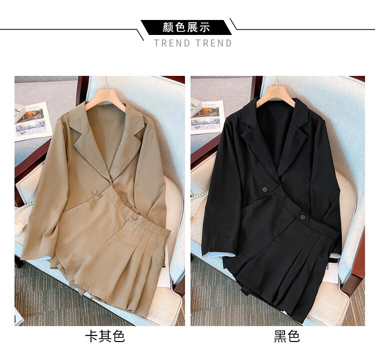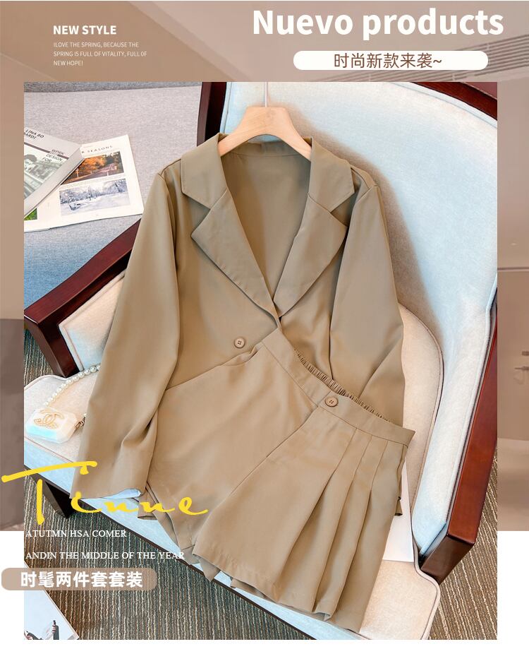 プラスサイズの婦人服 2023 春の新しいファットシスター年齢引き下げスーツジャケットハイウエストファッションカジュアルパンツ 2 点セット ハイウェスト 大きめサイズ スプリング 春物 8884177324997960