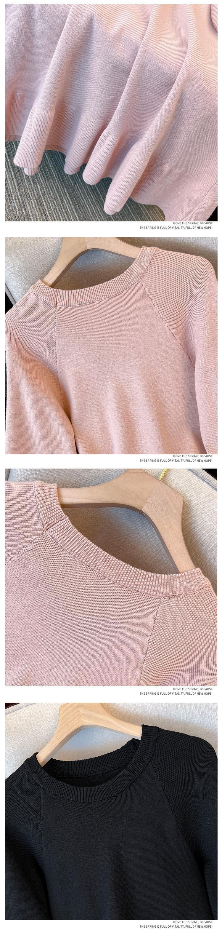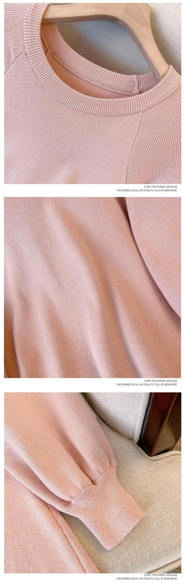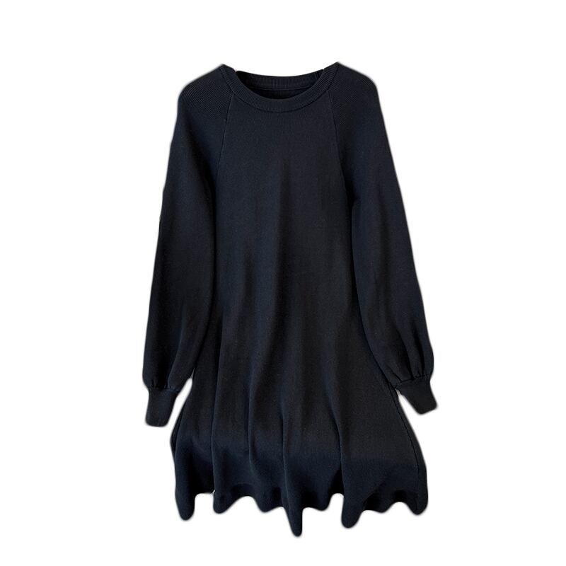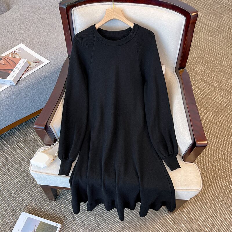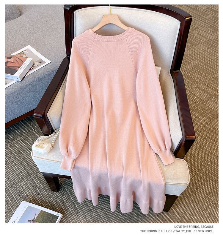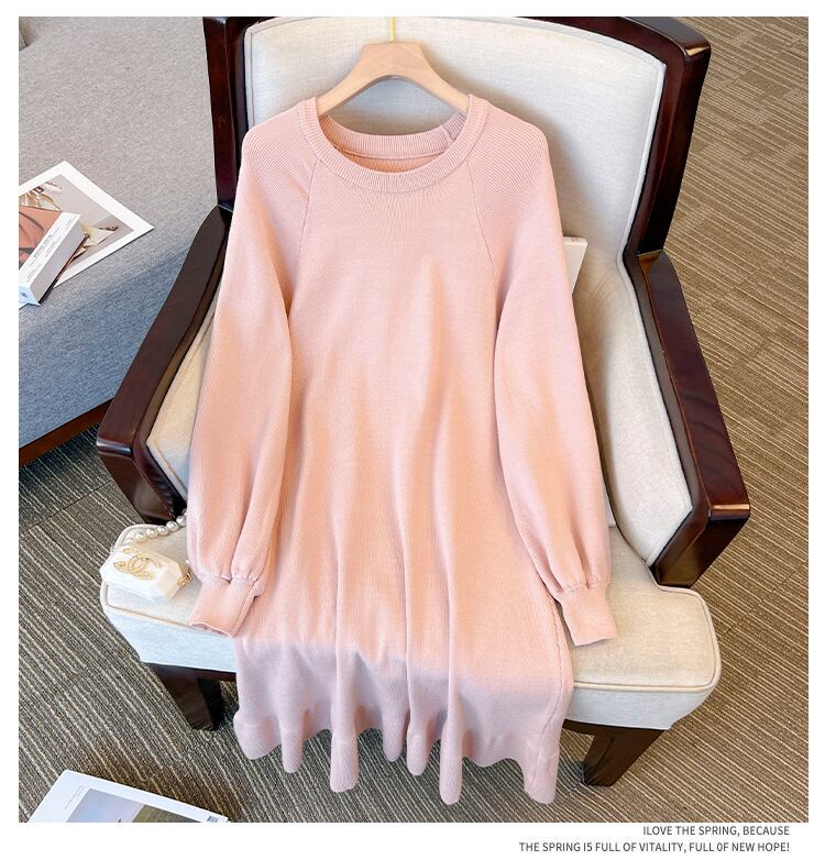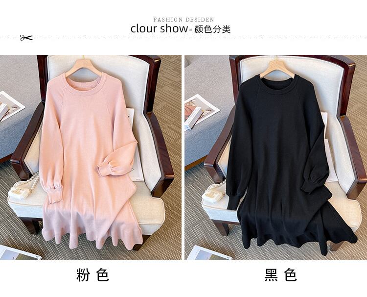 プラスサイズの婦人服 2023 春の新しいスタイルのファットシスターカジュアルルック薄いニットシックなラウンドネックカジュアルボトムドレス 大きめサイズ スプリング 春物 Oネック 8884163964582480