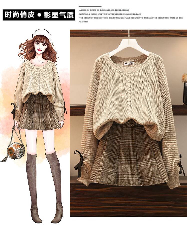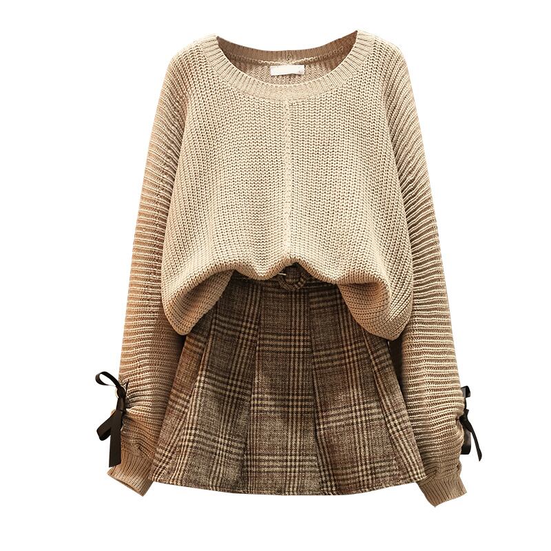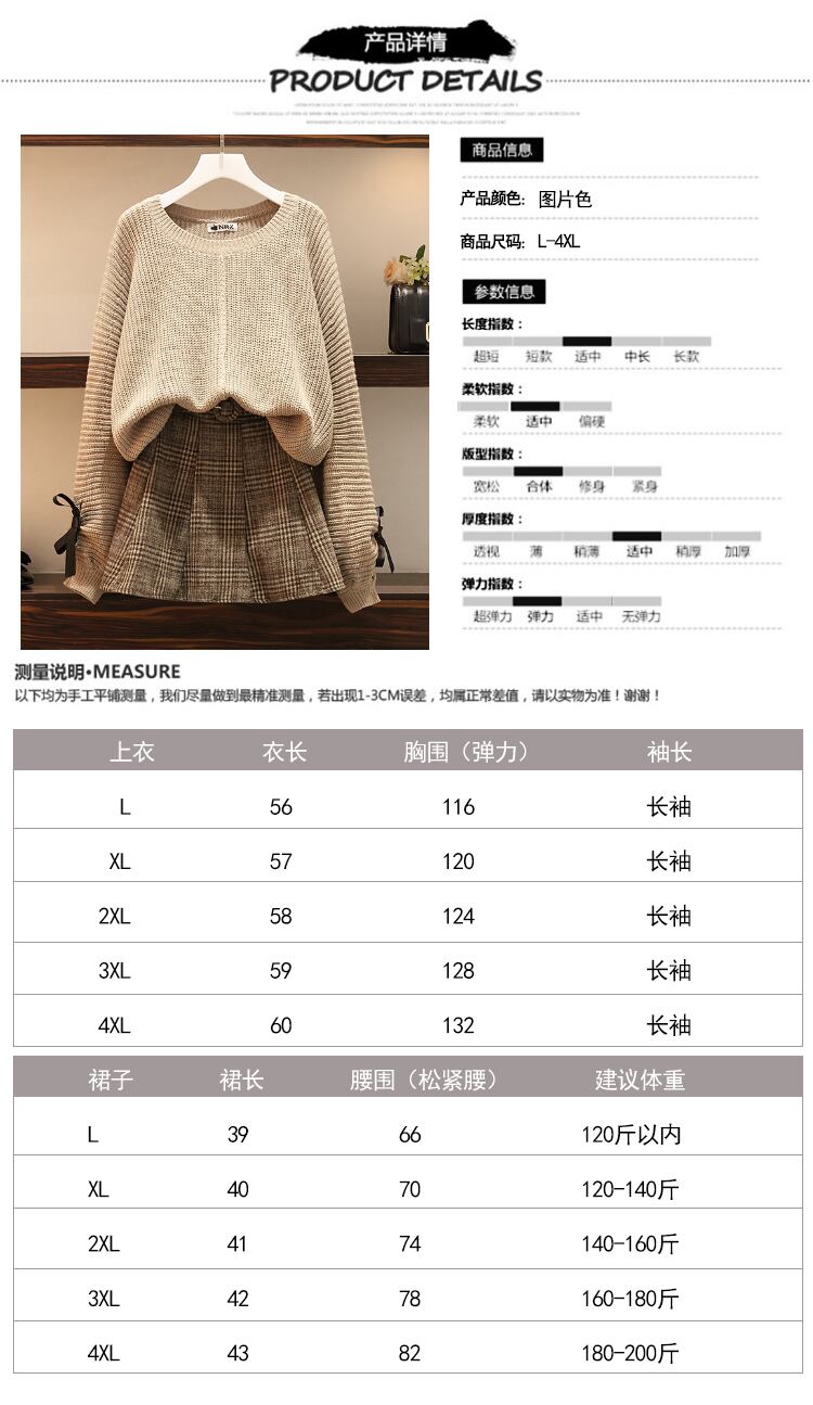 プラスサイズの婦人服 2023 脂肪姉妹春の新ファッション痩身ちょう結び長袖セータースカート 2 点セット ロング リボン 大きめサイズ スプリング 春物 8884192023434707