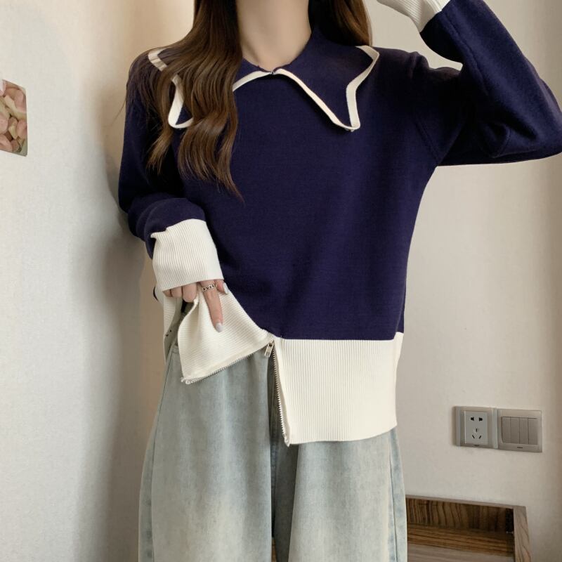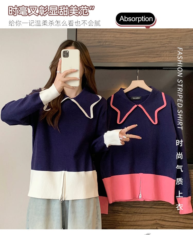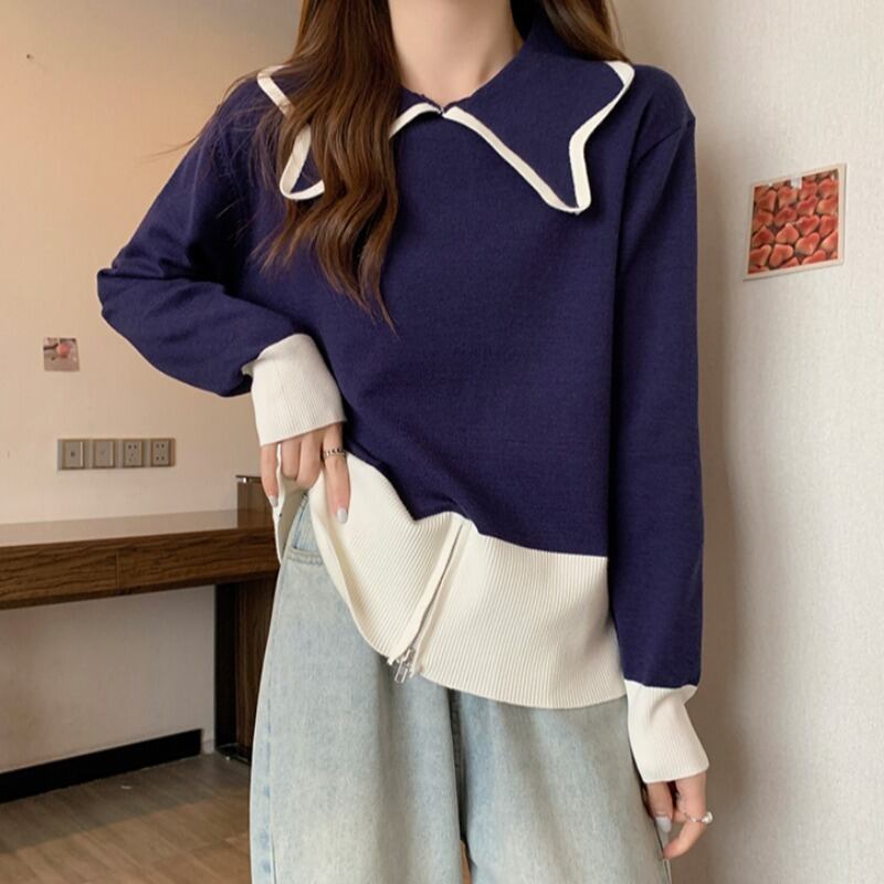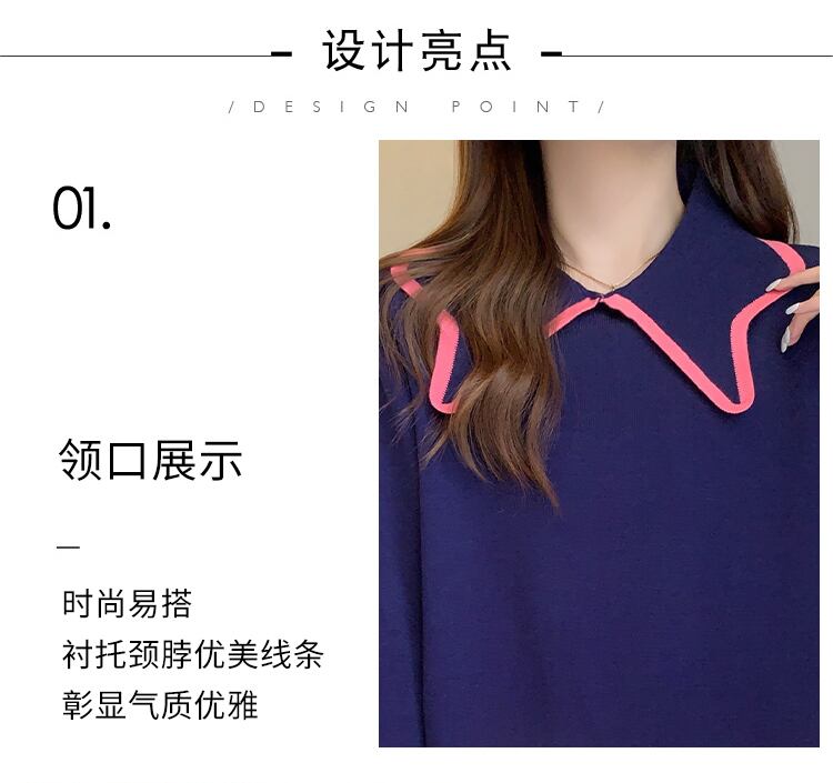 プラスサイズの婦人服 2023 春の新ファットシスター eign スタイル年齢減少痩身色の人形の襟シックなニットセーターの女性 大きめサイズ スプリング 春物 8884161867984753