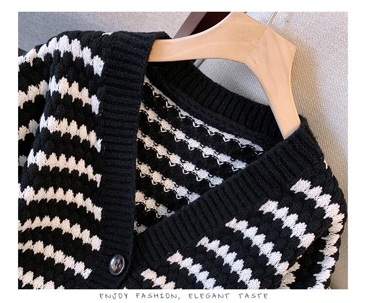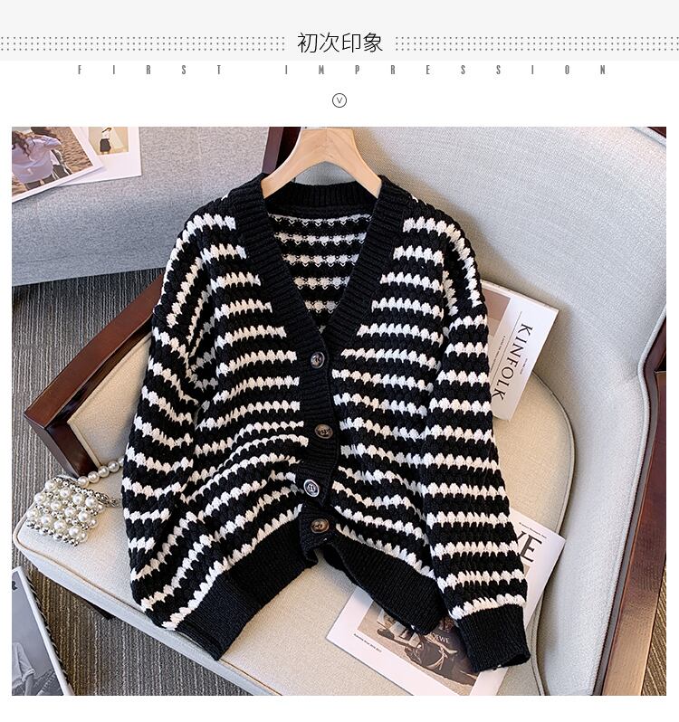 大きいサイズの婦人服 2023 トレンディな女性の春の新しい太った姉妹のファッション eign スタイルの年齢を減らすストライプのデザインのカーディガンのセーター 大きめサイズ スプリング 春物 8884146338172198