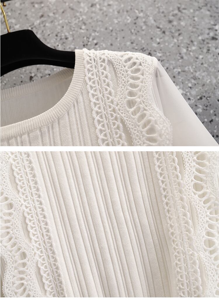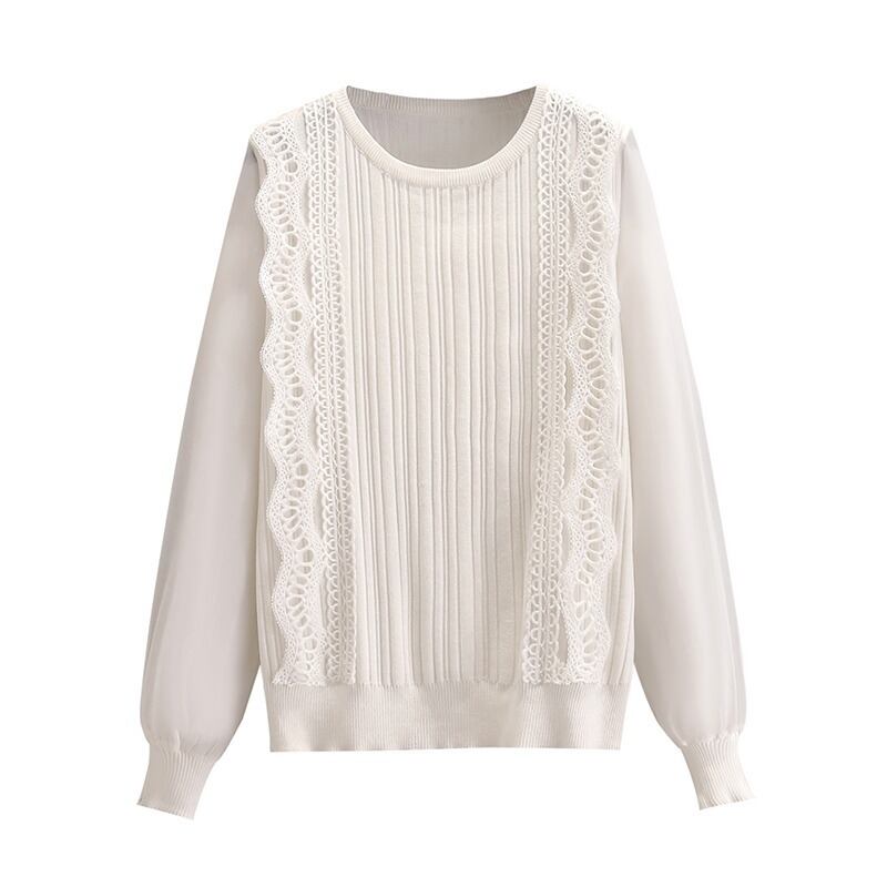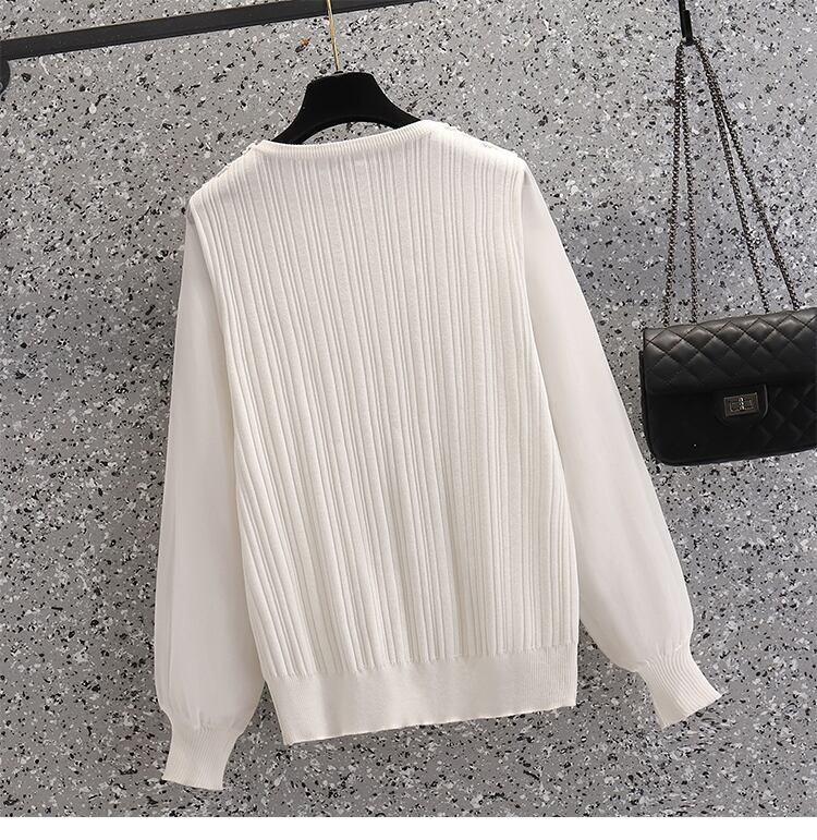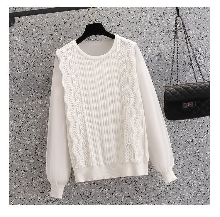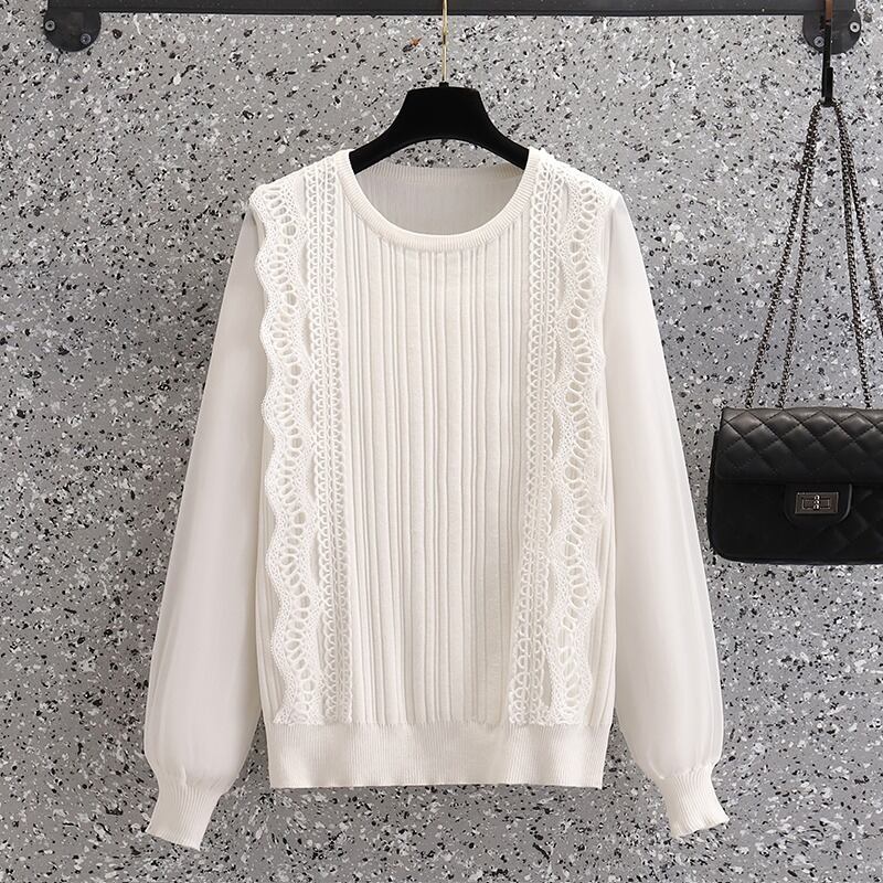 プラスサイズの婦人服 2023 トレンディな女性の春の新脂肪姉妹無地底入れシャツレースステッチシフォンニットセーター女性 大きめサイズ スプリング 春物 ソリッドカラー 8884195529643336