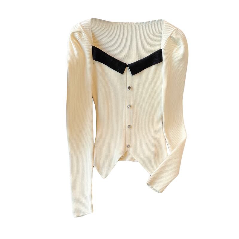 プラスサイズの婦人服 2023 春の新しいスプライシングスクエアカラーパフスリーブ薄い不規則なニットトップファットシスターズ 大きめサイズ スプリング 春物 スクウェア 8884151638851409